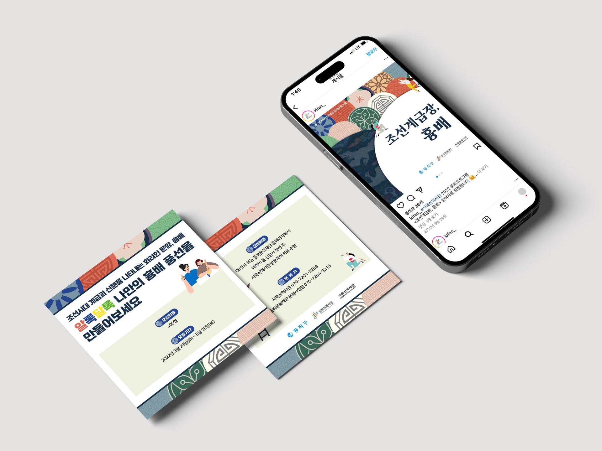 클라이언트 동작문화재단 디자인품목 포스터, 카드뉴스 제작연도 2022 | 조선시대 계급, 신분을 나타내는 화려한 문양을 뜻하는 흉배. 이를 강조하기 위해 각각의 원형에 다양한 컬러와 무늬의 전통 문양을 입히고, 또 이를 조화롭게 모아 또 하나의 패턴을 이루도록 디자인했습니다. 고전적이면서도 세련된 느낌으로 주목성을 높인 홍보물입니다. ![]() ![]() ![]() |