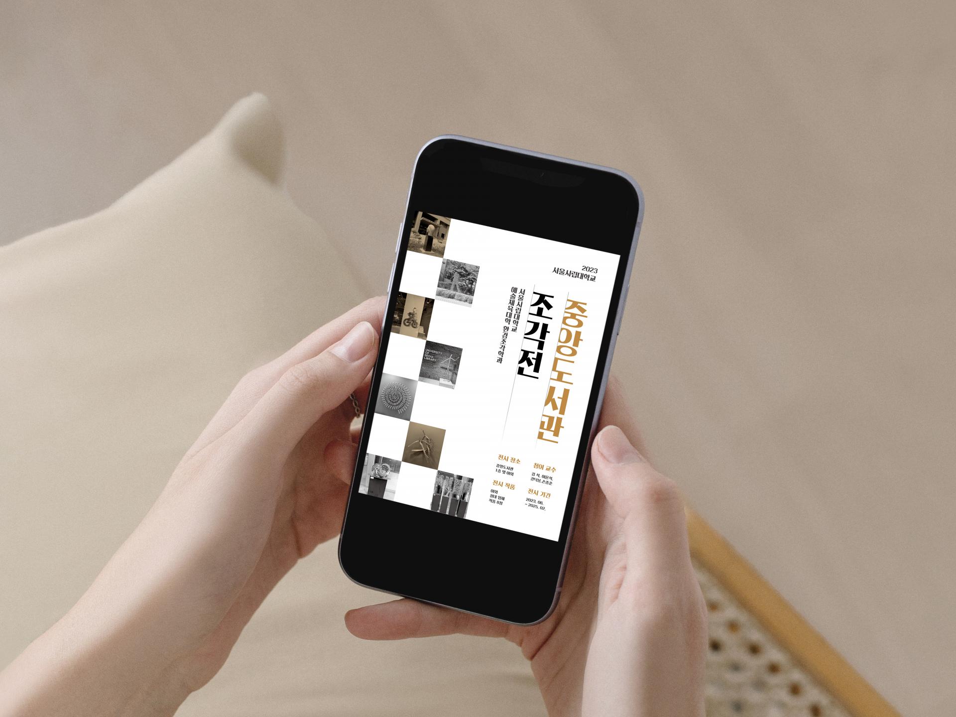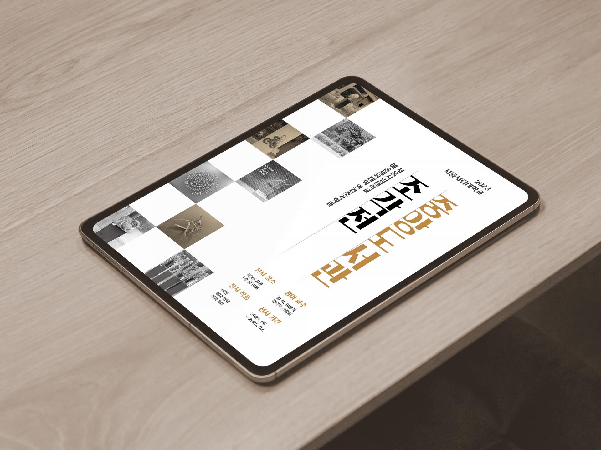 조각이 난 듯한 모자이크 배열 디자인을 활용한 서울시립대학교의 조각전 홍보용 웹 포스터입니다. 포스터 속 사진을 일관된 모노톤 이미지 색상으로 바꿔 통일 시키고, 조각과 어울리는 날카롭고 길쭉한 서체를 사용해 깔끔하고 가독성 좋게 표현하고자 했습니다.