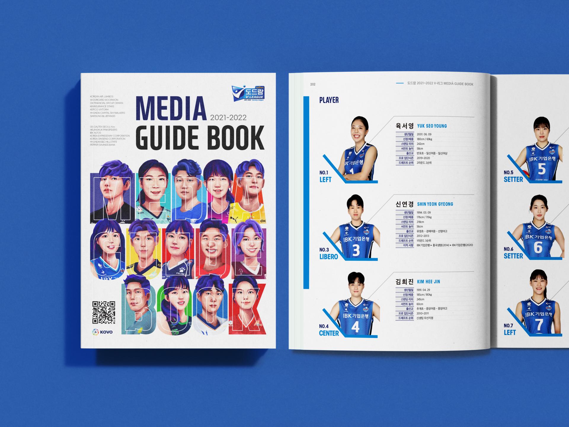 클라이언트 한국배구연맹 | 기존 실사 위주의 표지 디자인에서 차별성을 부여하기 위해 삽화와 배경 컬러, 제목 타이포를 조합해 입체적인 형태의 메인 그래픽을 디자인헀습니다. 내지는 사선 오브젝트를 주된 요소로 활용해 공이 튀는 모습과 선수들의 역동성을 표현했습니다. 또한 많은 텍스트와 표를 통일성 있게 정리해 가이드북에 적절한 가독성을 갖추었습니다. ![]() ![]() ![]() ![]() |