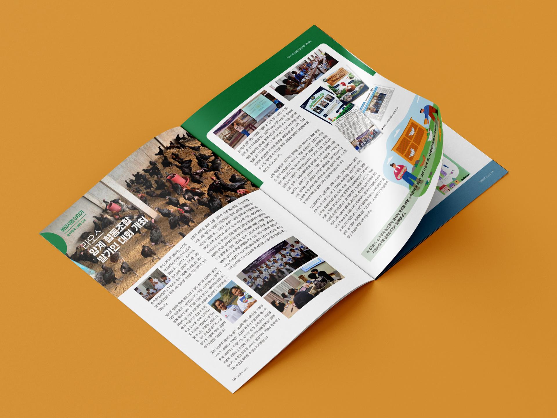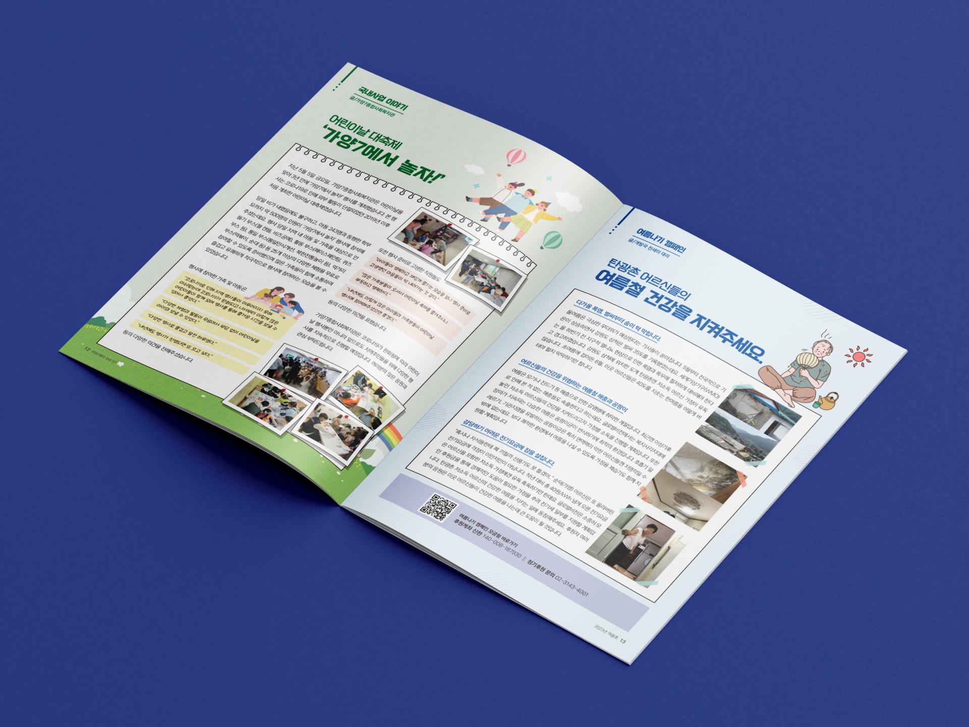 테마 별로 다양한 레이아웃과 일러스트+실사의 조합을 활용하여 이야기의 생동감이 느껴지는 계절 소식지입니다. 정기간행물의 특징을 살려 표지는 통일감있게 디자인하였고, 내지는 여러가지 활동 소식을 전할 수 있게 컨텐츠에 어울리는 다양한 레아웃을 사용하여 시각적인 재미를 주었습니다.