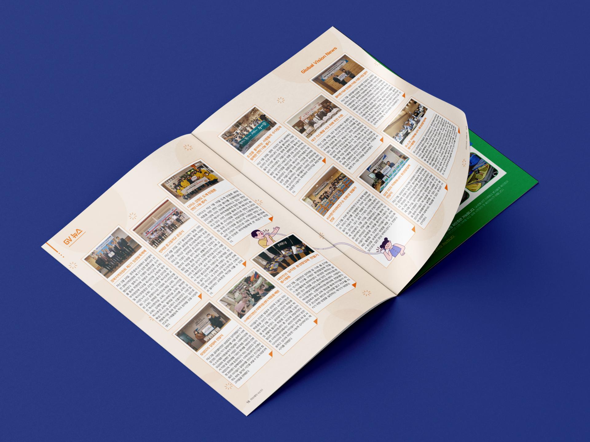 클라이언트 글로벌비전 | 테마 별로 다양한 레이아웃과 일러스트+실사의 조합을 활용하여 이야기의 생동감이 느껴지는 계절 소식지입니다. 정기간행물의 특징을 살려 표지는 통일감있게 디자인하였고, 내지는 여러가지 활동 소식을 전할 수 있게 컨텐츠에 어울리는 다양한 레아웃을 사용하여 시각적인 재미를 주었습니다. ![]() ![]() ![]() ![]()