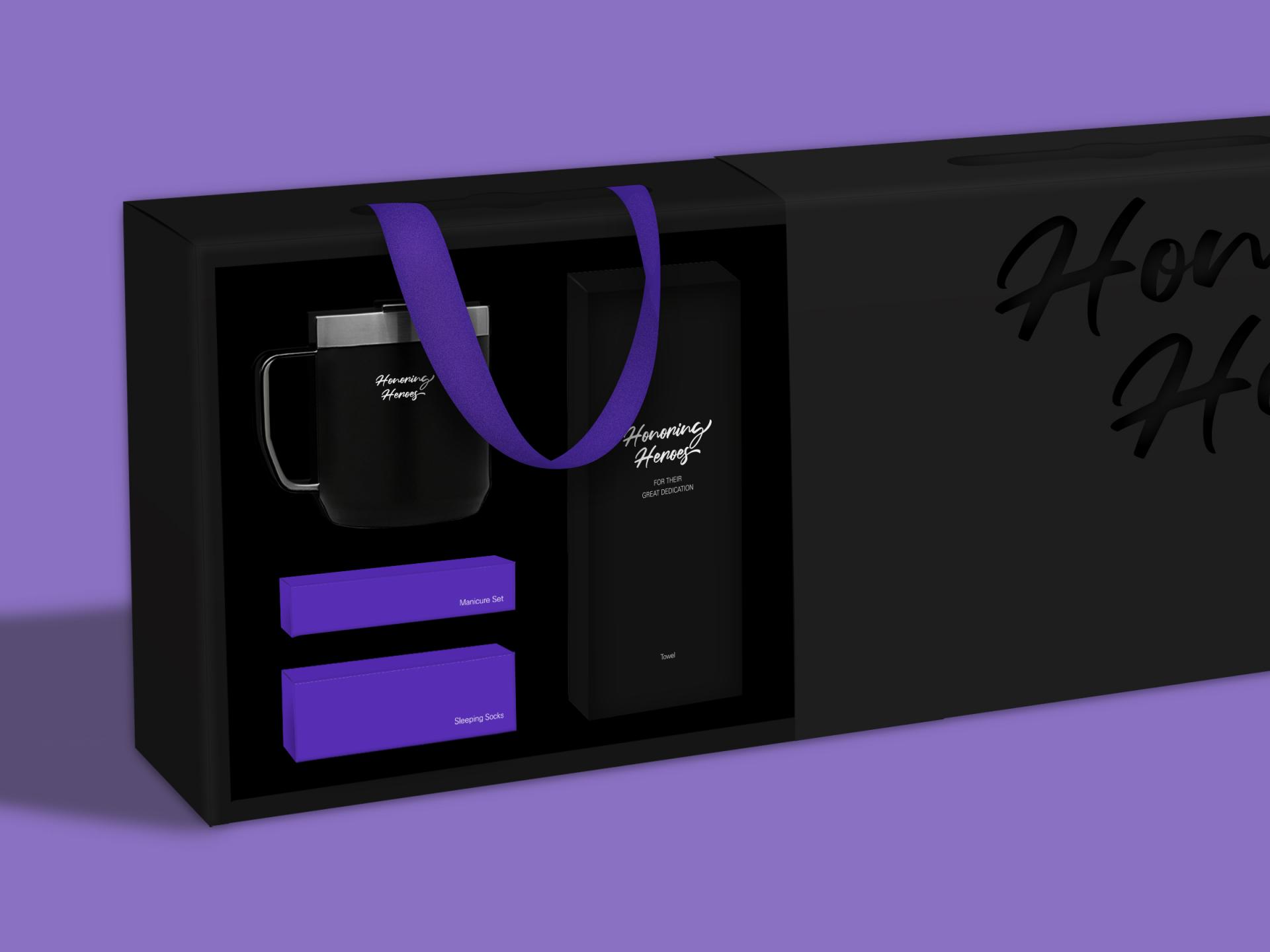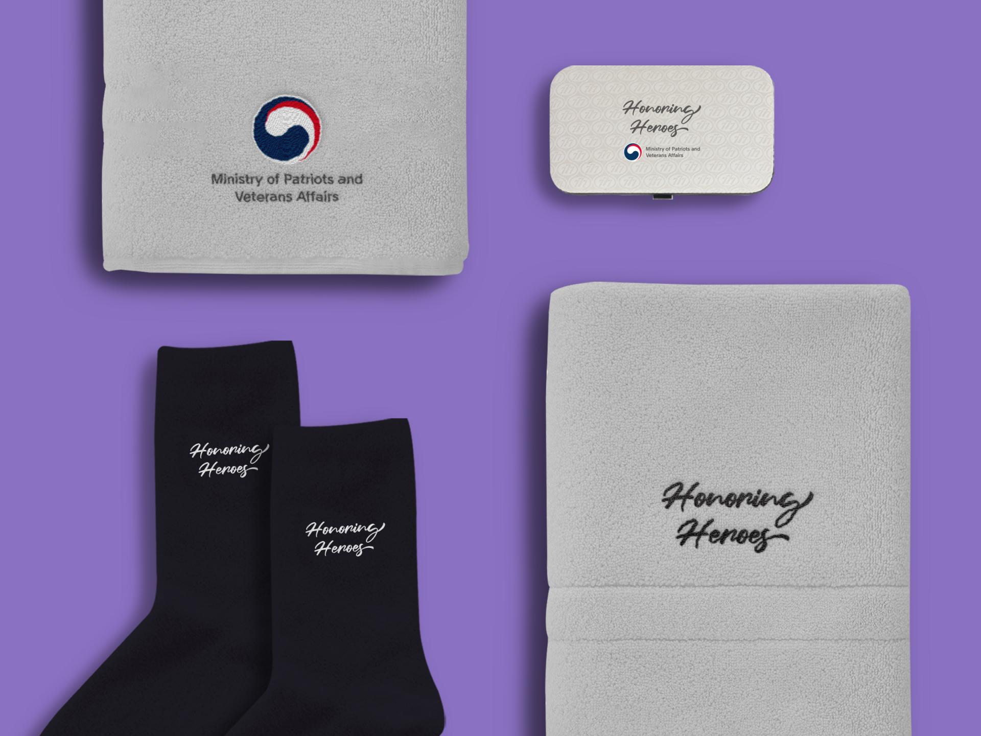 클라이언트 국가보훈부 | 부드러운 느낌의 캘리그래피 폰트와 블랙, 퍼플 컬러 조합으로 경건한 분위기를 자연스럽게 연출한 위문 키트입니다. 패키지의 에폭시 후가공과 트레싱지 웰컴카드로 은은하게 고급스러운 느낌을 더하고, 구성품별로 단상자를 제작하여 통일성을 주었습니다. ![]()