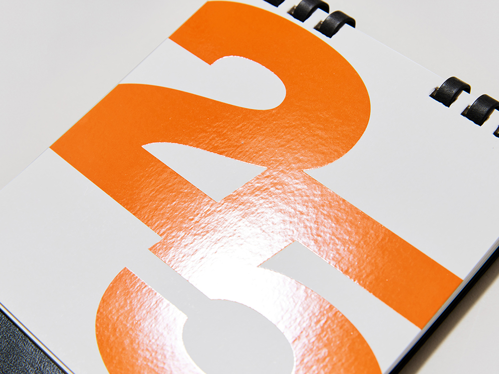 이미지나 일러스트 없이 숫자만으로 구성된 깔끔한 다이어리와 달력입니다. 삼양의 기념일과 공휴일을 제외한 음력과 절기 정보를 제거하여 간결함을 강조했으며, 삼양 메인 주황/검정 두 가지 색상만 사용하여 브랜드 아이덴티티를 명확하게 드러냈습니다.