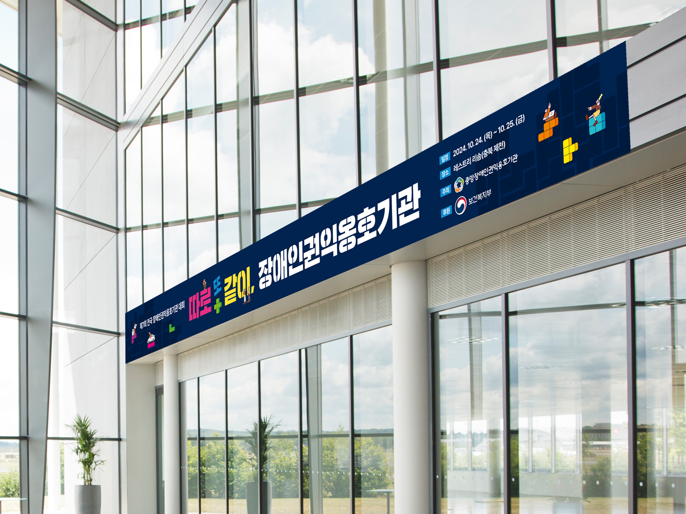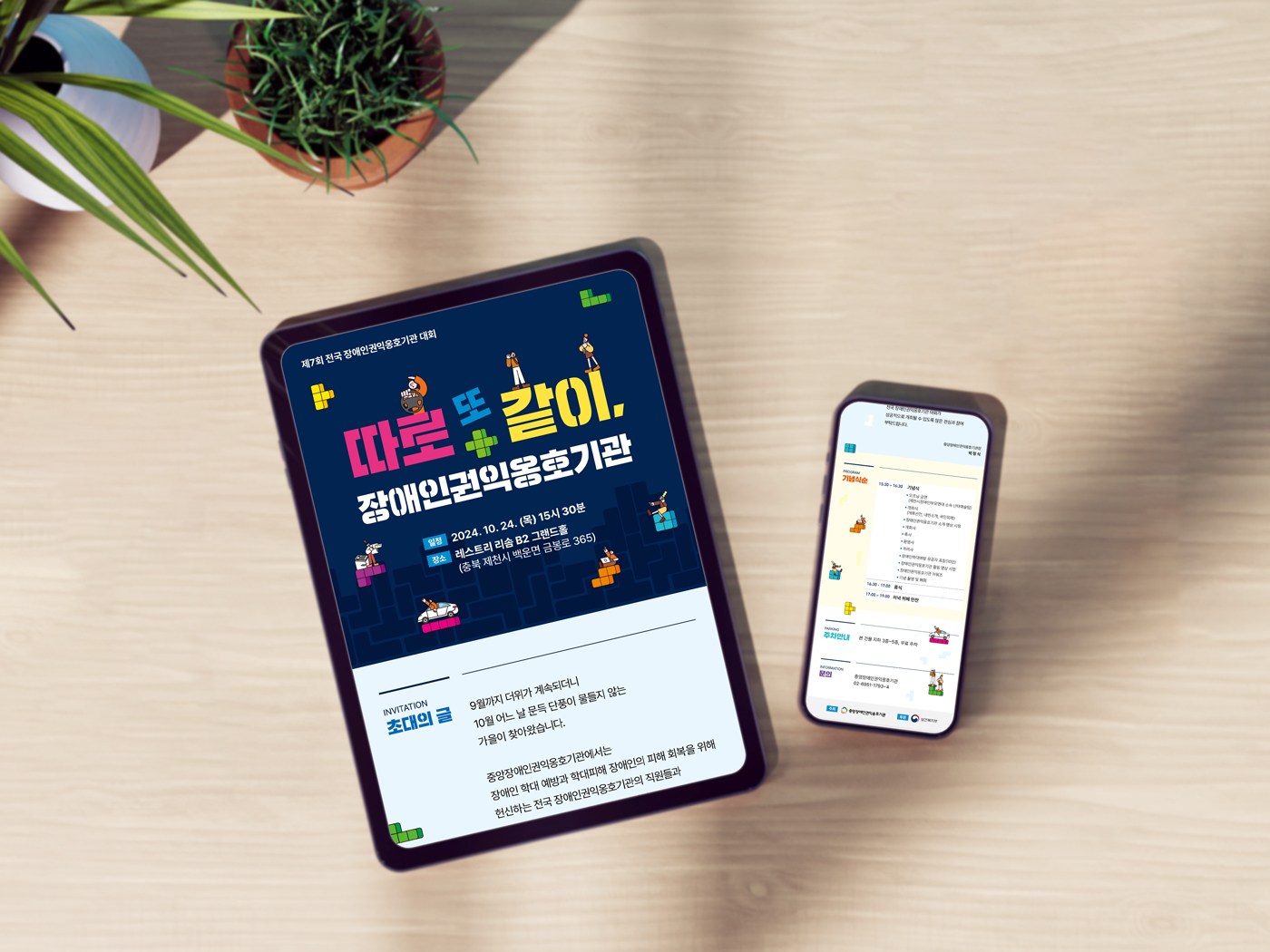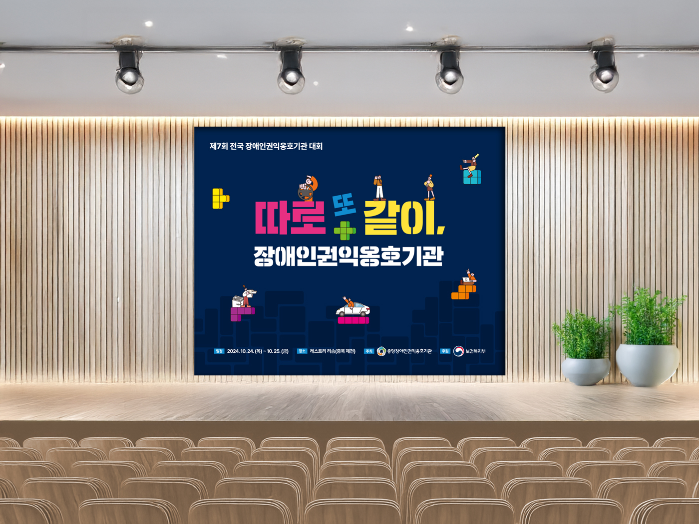 '따로 또 같이'라는 행사 주제를 시각적으로 잘 전달할 수 있도록 '테트리스' 형태의 키비주얼을 일러스트로 구성한 홍보물 디자인입니다. 다채로운 컬러 활용으로 다양성의 의미를 표현하였으며, 명도가 낮은 배경으로 내용의 가독성을 높였습니다.