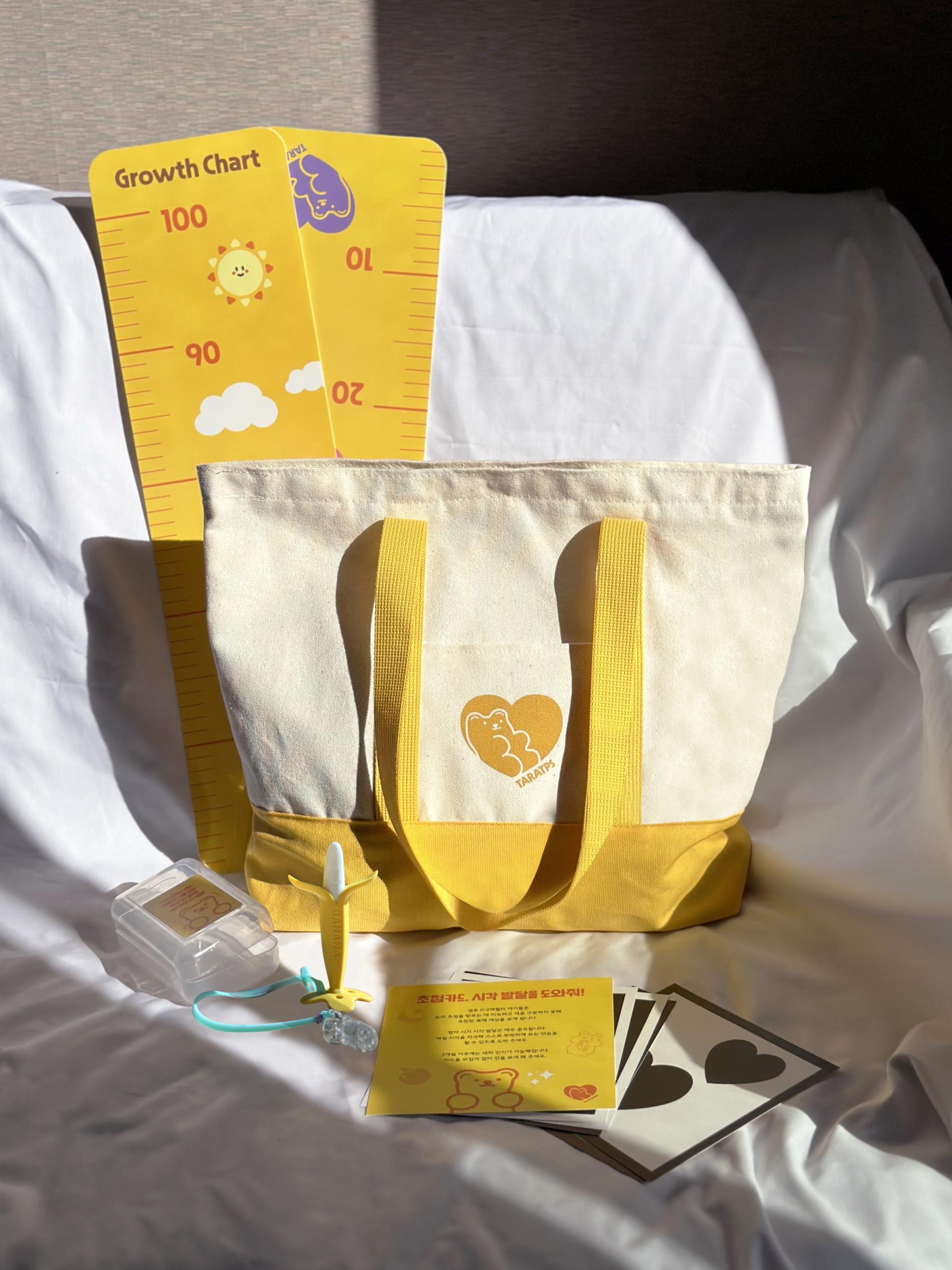 신생아 시기 이후까지 오래 사용할 수 있는, 아기들의 성장 과정을 함께할 수 있는 실용적인 아이템으로 구성한 샛노란 키트입니다. 뱃속 태아를 하트 속 젤리곰으로 표현한 심볼을 구성품에 응용해 전체적으로 귀여움을 더했습니다. 아기자기한 일러스트를 많이 사용해 보는 재미까지 생각한 키트로, 조리원이나 제약사 등의 프로모션에 활용하기 좋습니다.