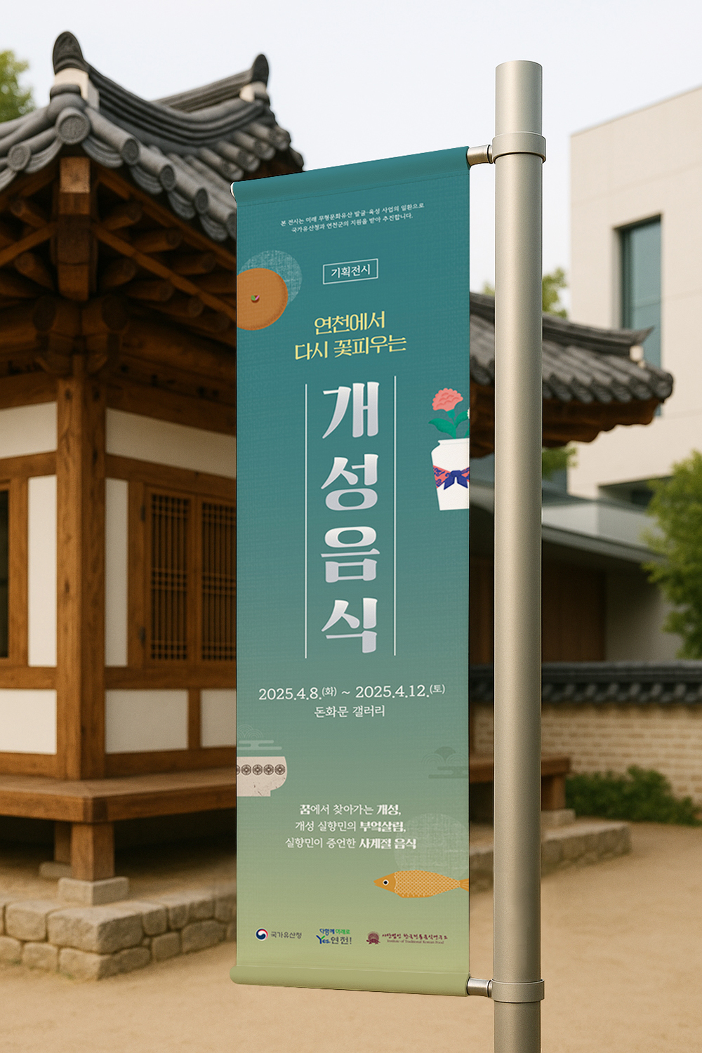 작년 말 진행된 <연천에서 다시 꽃피우는 개성음식> 책자의 베리에이션으로, 시선이 세로로 자연스럽게 흐르는 레이아웃의 디자인입니다. 기존 책자와 디자인 요소를 유지하되 메인 컬러톤을 청녹색으로 조정해 연속성을 유지하면서 새로운 느낌을 부여했습니다.