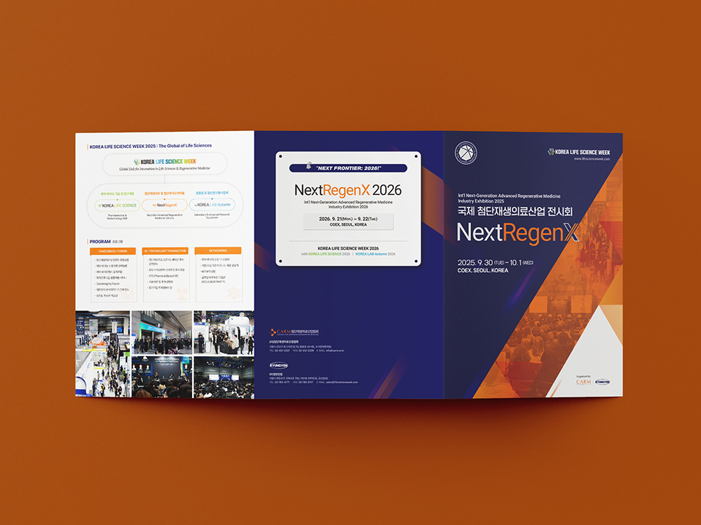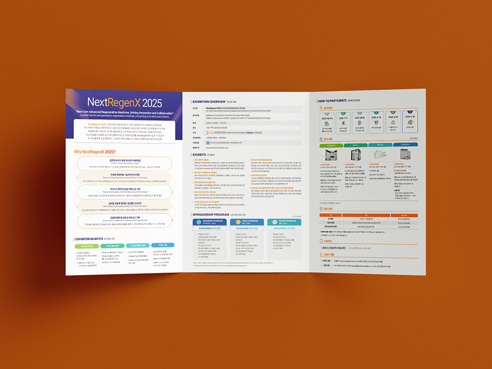 메인 로고는 두 가지 색상으로 단순하게 구성하고, 주황색 포인트로 강조했습니다. 'X'에는 표지를 가로지르는 대각선과 중첩되는 디테일을 더해 산업의 역동성과 활기를 표현했습니다. 내지에는 보색을 일부 활용해 정보 구분을 돕고 가독성을 높였습니다.
