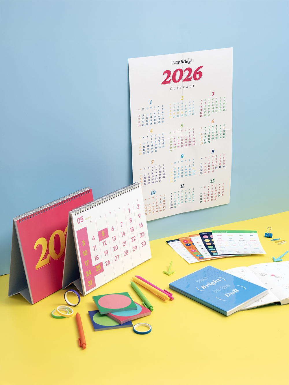 견고한 타포린 소재의 파우치, 단차가 돋보이는 감각적인 탁상 달력, 자유로운 기록을 위한 만년형 다이어리까지 스타일과 실용성을 갖춘 구성입니다.