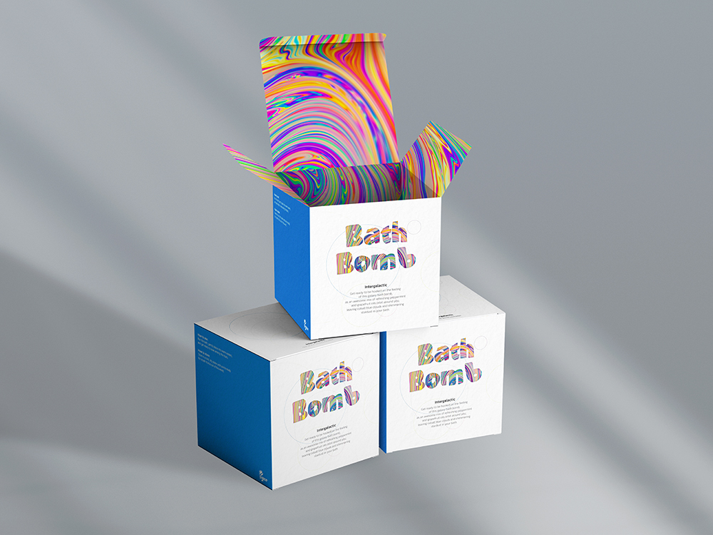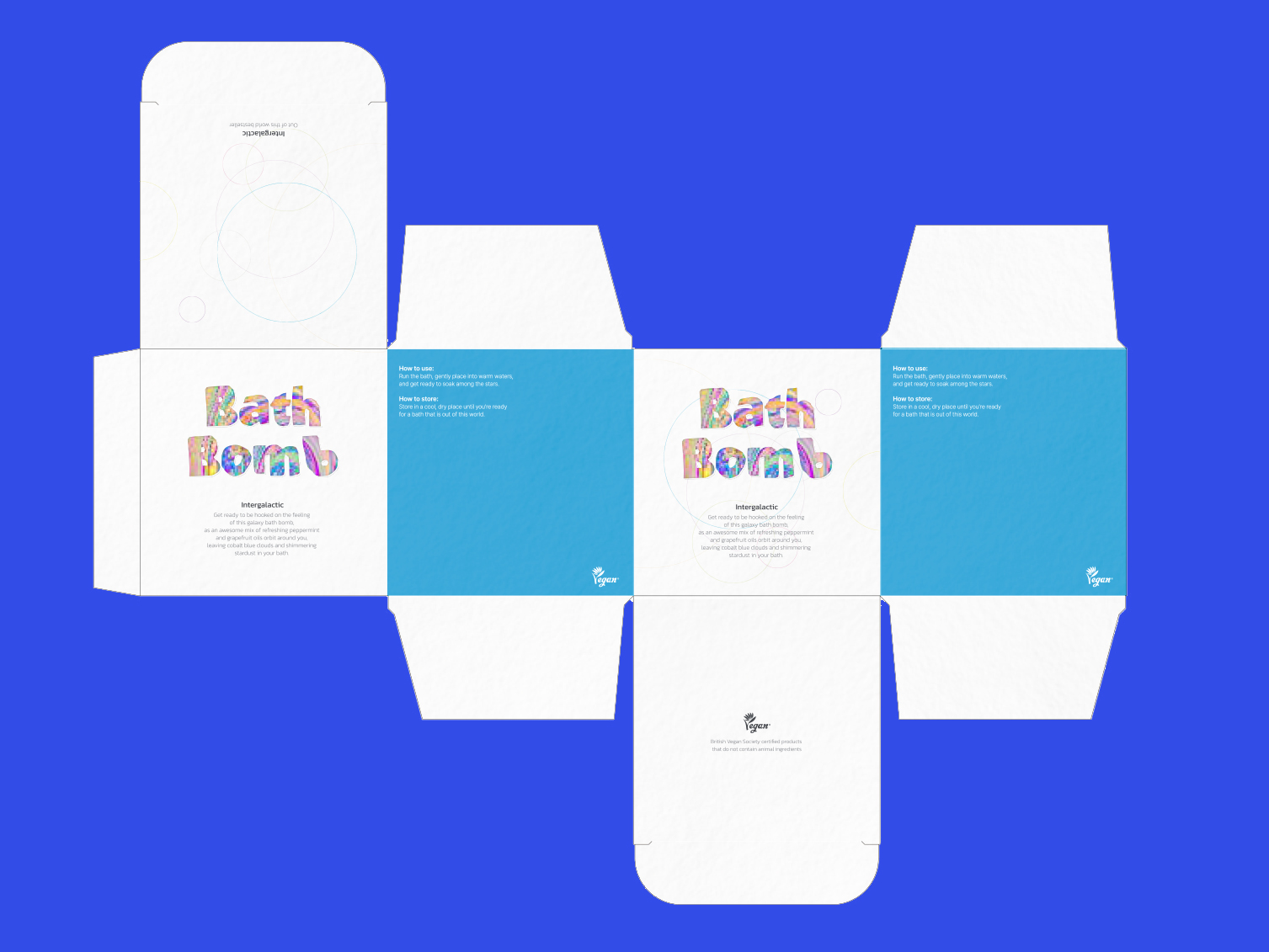 화려한 블렌딩 컬러를 패키지 안쪽에 매치하고, 겉면은 심플한 라인으로 정리했습니다. 타이틀에는 바스밤의 컬러를 포인트로 사용해 화려함을 강조했으며, 다양한 배스밤 색감을 채도가 높은 톤으로 표현해 소비자의 시선을 사로잡을 수 있도록 디자인했습니다.