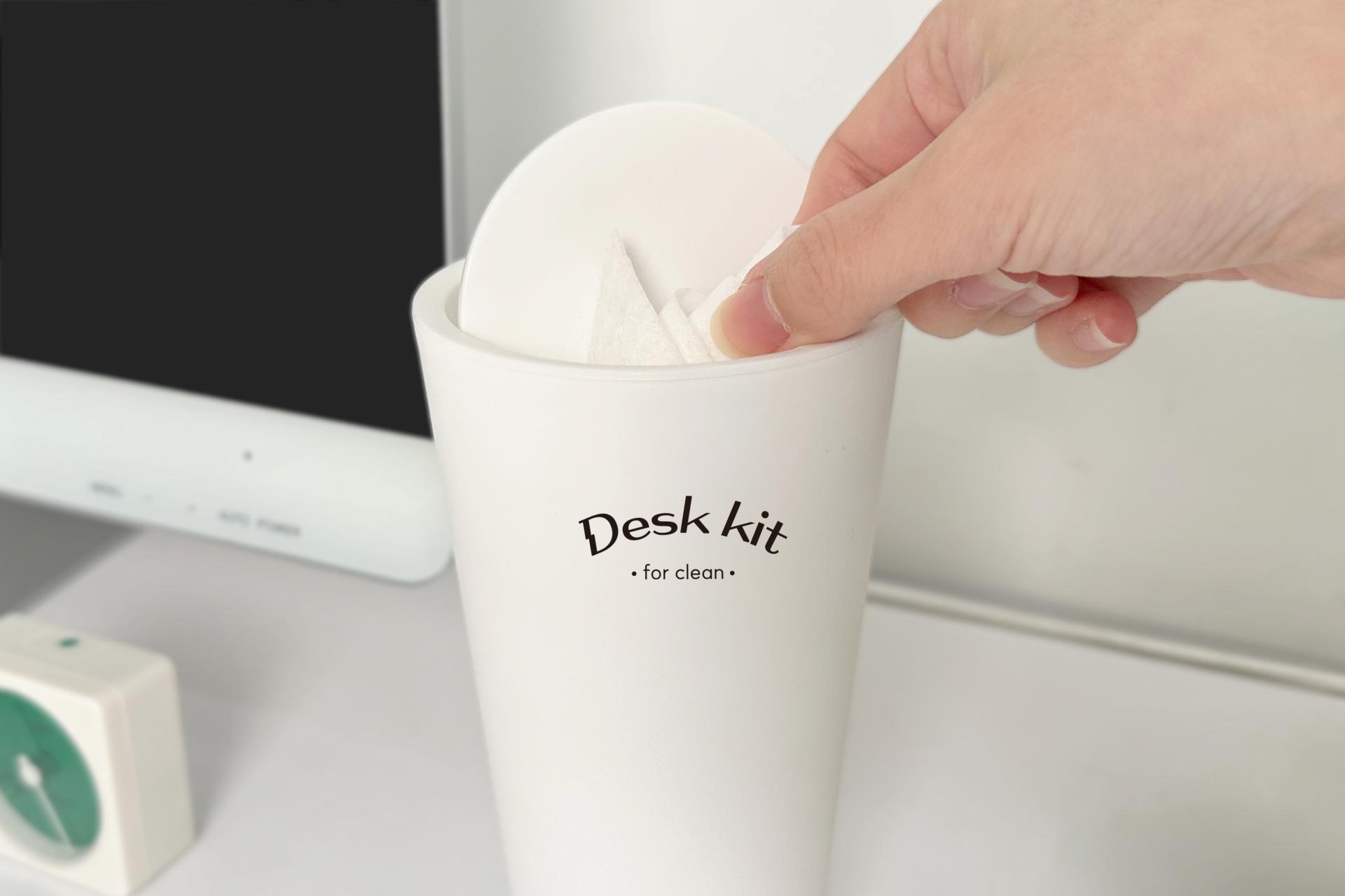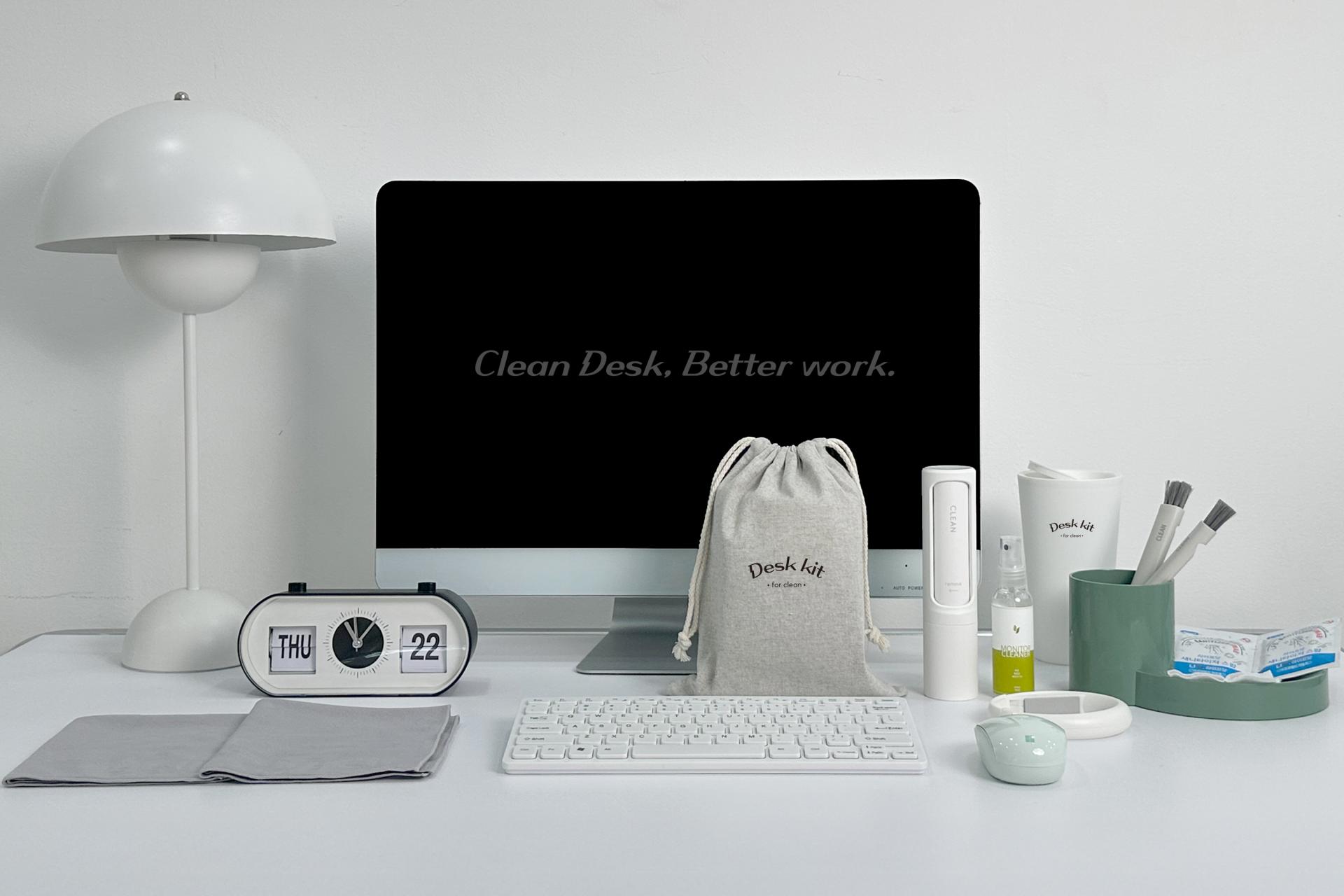 책상 위 필요한 청소와 번거로움을 즉각적으로 해결할 수 있도록 기획한 데스크 키트입니다. 화이트&그레이 톤의 모던한 컬러의 구성품으로 시각적인 정돈감을 전달하며, 업무 환경을 개선하면서도 브랜드 아이덴티티를 자연스럽게 담아낼 수 있는 실속형 키트입니다.