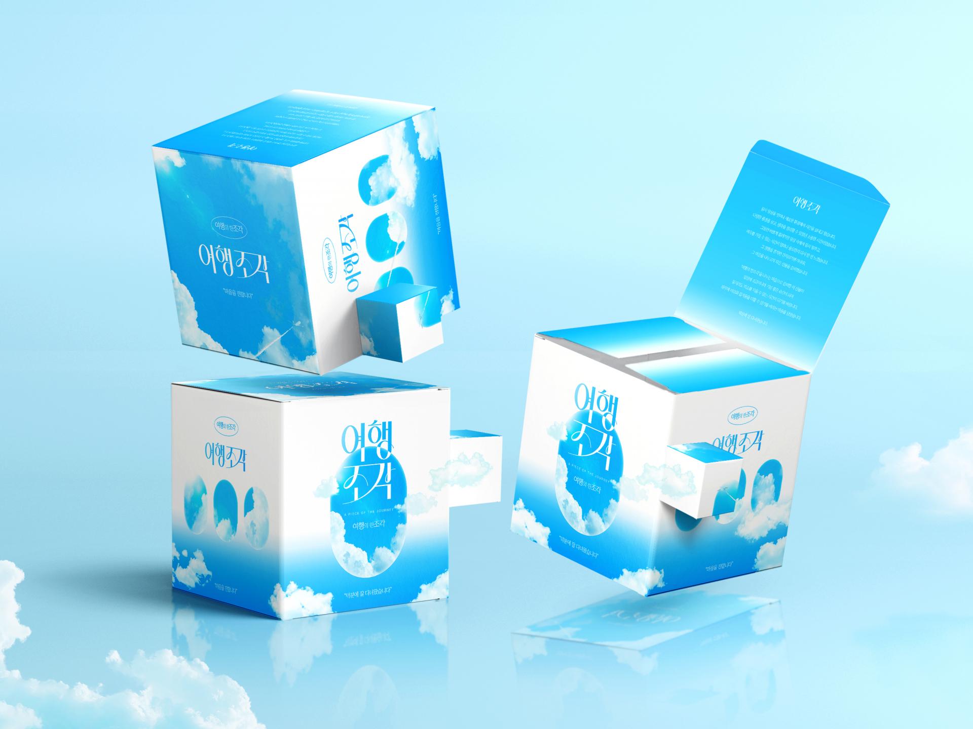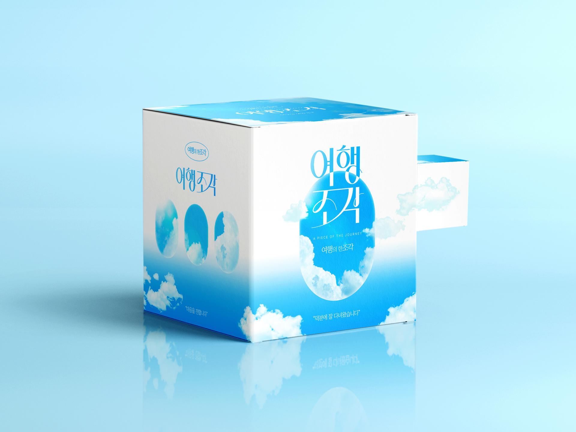 여행지에서의 소중한 순간들을 담은 기념품을 전달하기 위한 개별 기프트 케이스입니다. 여행을 떠오르게 하는 비행기 창문, 하늘, 구름 그래픽을 키비주얼로 활용하여 설렘과 감성을 표현하였으며, '조각'이라는 컨셉에 맞춰 측면 추가 수납 공간을 배치하였습니다.