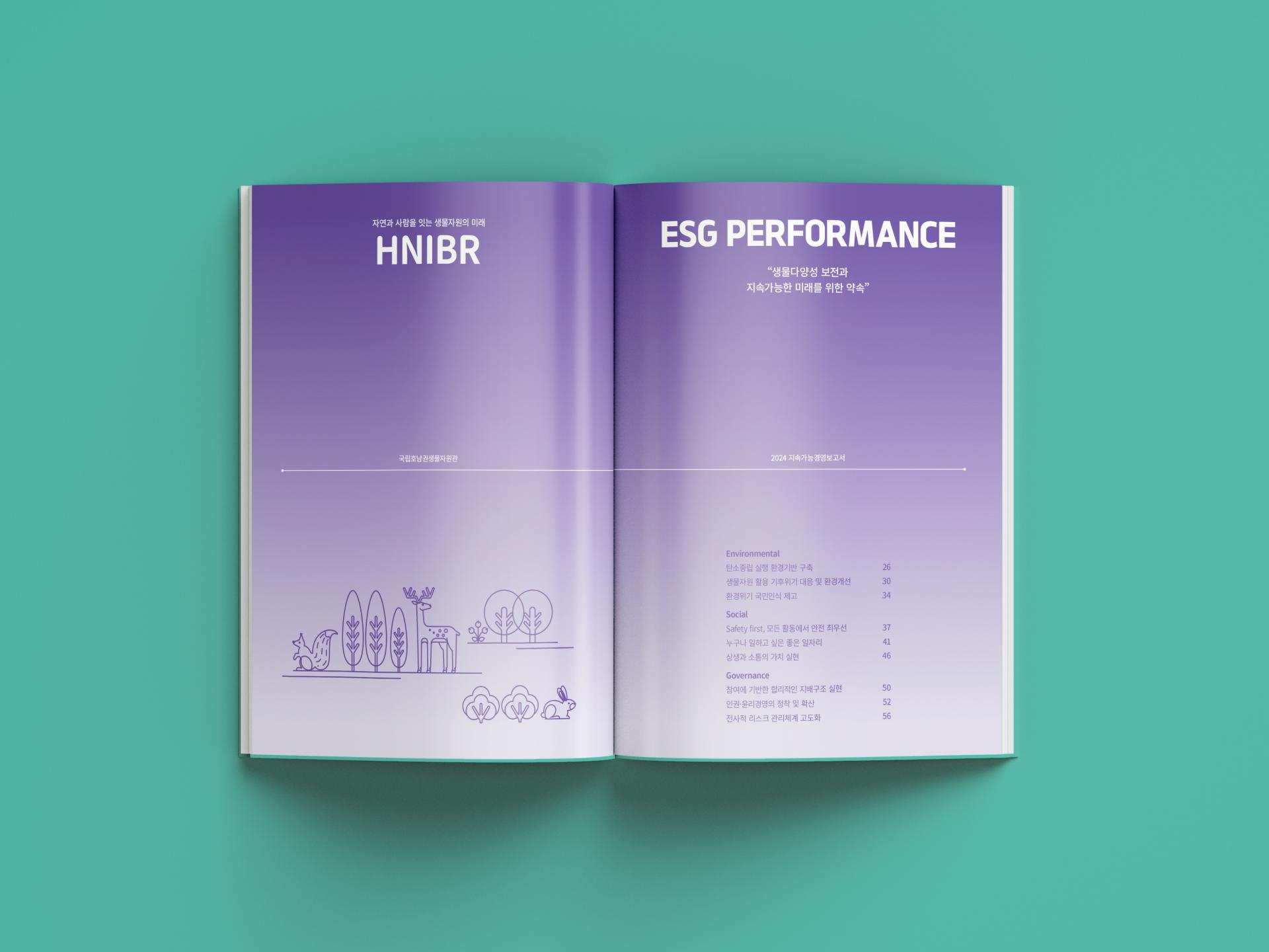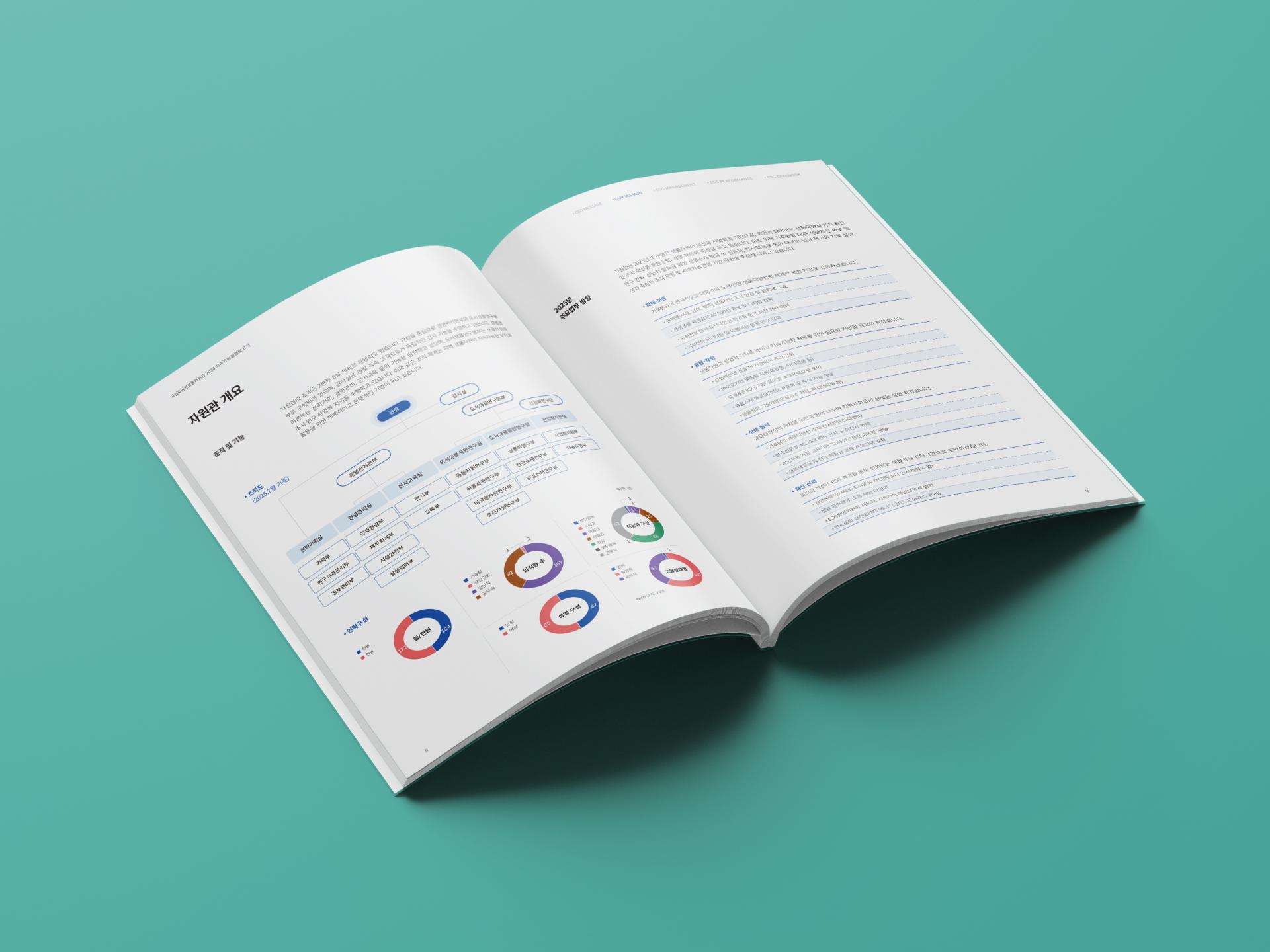생물자원기관의 성격을 담은 일러스트를 활용한 연차보고서입니다. 화려한 일러스트와 조화를 이루기 위해 부드러운 그라데이션 컬러와 라인을 사용하여 심플한 레이아웃으로 배치하였으며, 챕터별 색상을 중심으로 인포그래픽을 단색으로 깔끔하게 구성하였습니다.