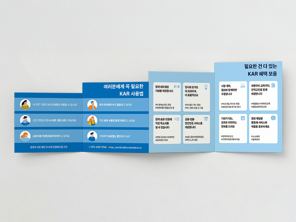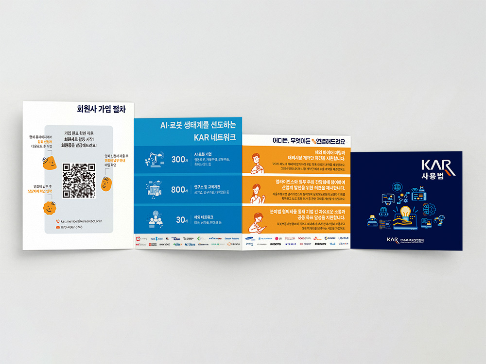 클라이언트 한국AI·로봇산업협회 | 협회의 주요 사업과 회원 혜택을 한눈에 전달하기 위해 계단식 구조와 인포그래픽을 활용하여 디자인하였습니다. 모던한 컬러와 단순한 그래픽 요소로 정보 흐름 중심의 시각화를 강조하였습니다. ![]() ![]() ![]() |