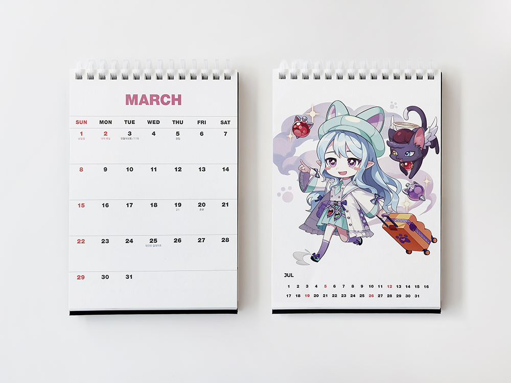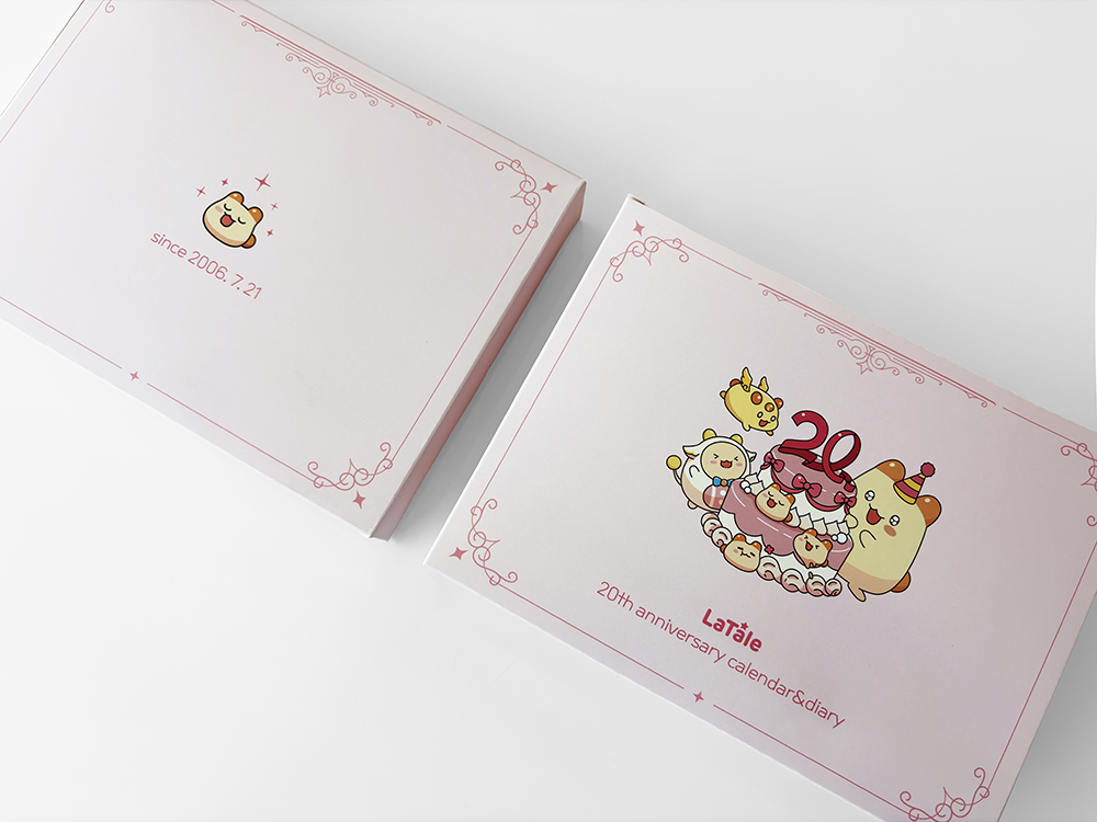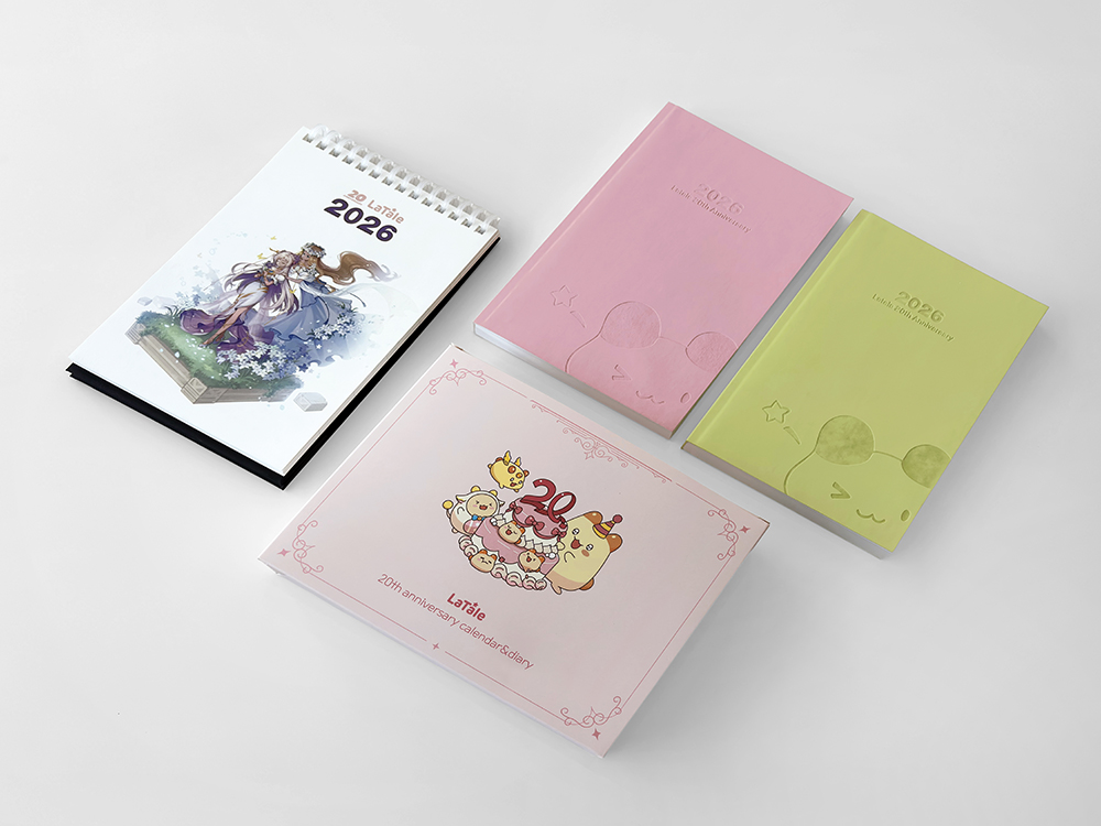 클라이언트 액토즈소프트 디자인품목 탁상캘린더, 다이어리, 패키지 제작연도 2025 | 액토즈소프트의 장수 IP ‘라테일’ 20주년을 기념해, 브랜드를 상징하는 컬러와 캐릭터를 산뜻하면서도 포근한 네온 파스텔 톤으로 재해석했습니다. 유저에게 익숙한 인게임 일러스트와 마스코트 캐릭터를 균형감 있게 배치해, 팬덤의 소장 가치를 한층 높인 시즌 한정 굿즈입니다.