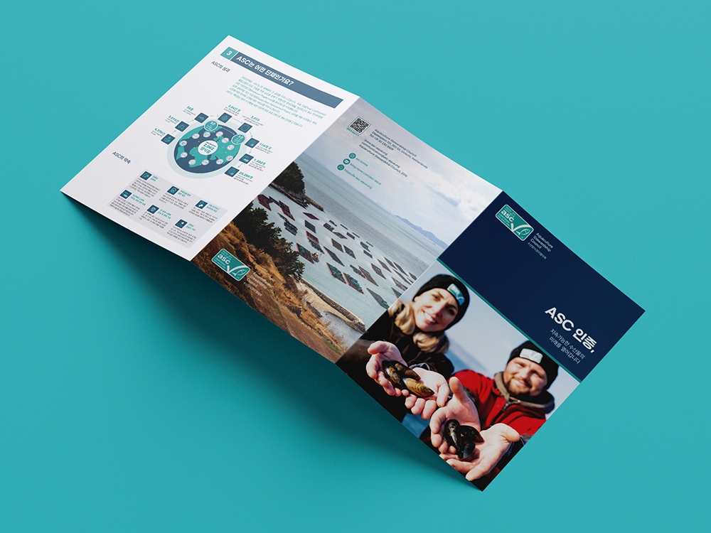 클라이언트 ASC협회 | ASC 협회의 로고를 활용한 청록색 계열의 심플한 배경과 사람의 손에 담긴 수산물 이미지를 통해 ‘지속가능성(Sustainability)’과 ‘신뢰성(Certification)’을 시각적으로 전달했습니다. 또한 내지는 기업이 전하고자 하는 메시지를 텍스트 대신 일러스트로 풀어내어 자연스럽게 스토리텔링을 완성했습니다. ![]() ![]() ![]() |
