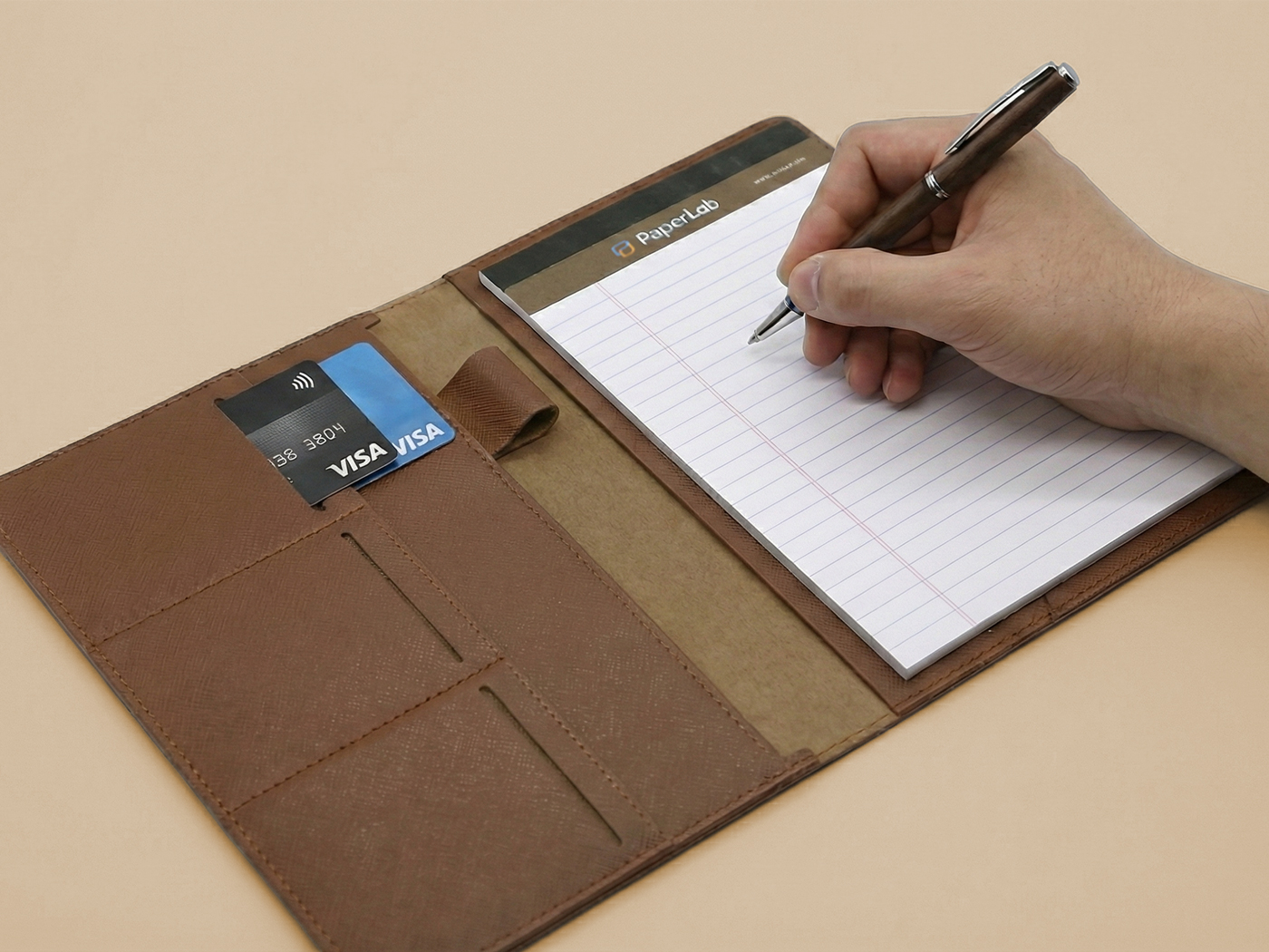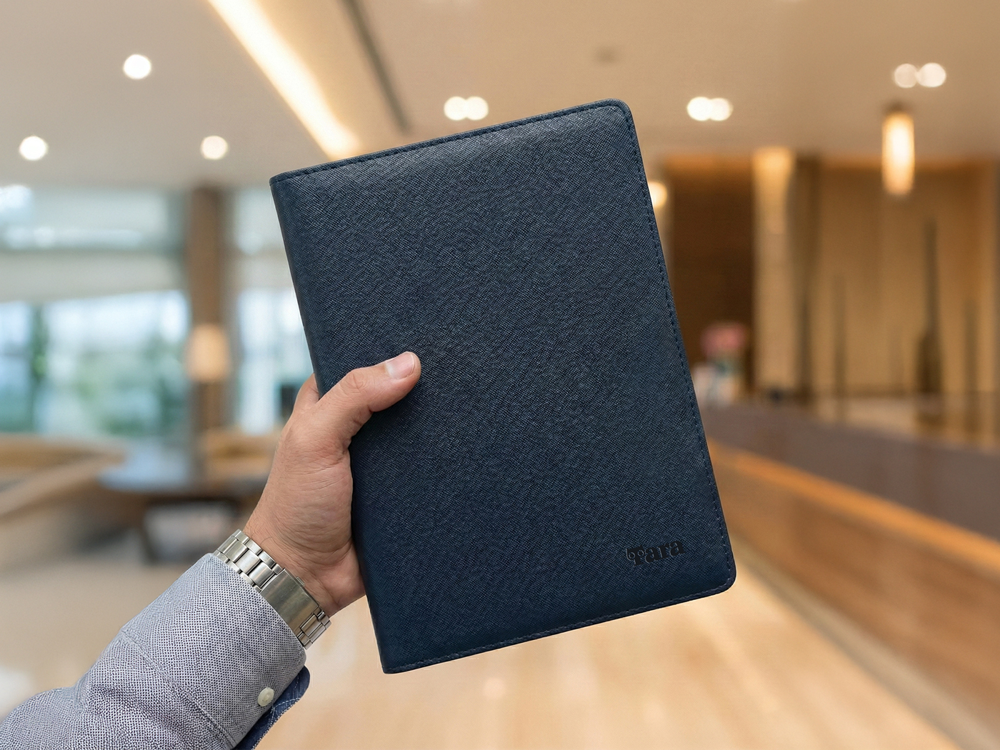 클라이언트 자체 프로젝트 | 외근이 잦은 비즈니스 워커들을 위한 수납형 올인원 바인더 패드입니다. 명함/카드/메모지/펜까지 한 번에 휴대할 수 있으며 A5 사이즈의 적당한 크기로 가볍게 휴대하기 좋습니다. 3단 카드포켓과 시중 제품 호환 가능한 리갈패드 구성으로 실용성이 뛰어나고 영업사원용 웰컴 키트나 고객 미팅용 프리미엄 굿즈로 활용하기에 적합합니다.