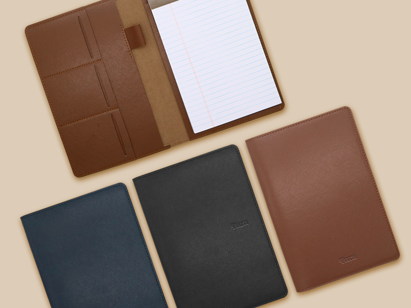 외근이 잦은 비즈니스 워커들을 위한 수납형 올인원 바인더 패드입니다. 명함/카드/메모지/펜까지 한 번에 휴대할 수 있으며 A5 사이즈의 적당한 크기로 가볍게 휴대하기 좋습니다. 3단 카드포켓과 시중 제품 호환 가능한 리갈패드 구성으로 실용성이 뛰어나고 영업사원용 웰컴 키트나 고객 미팅용 프리미엄 굿즈로 활용하기에 적합합니다.