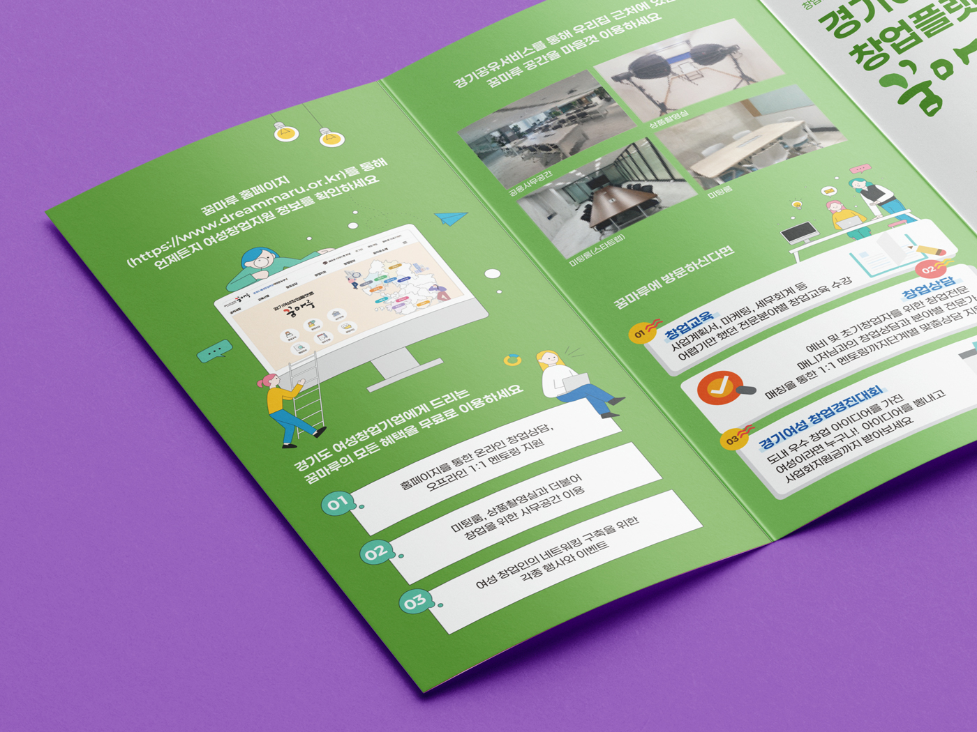 클라이언트 경기도일자리재단 | 따뜻한 성장의 메시지를 감각적인 일러스트와 따뜻한 컬러 구성을 통해 시각적인 언어로 풀어낸 리플렛 디자인입니다. 새싹과 꽃, 흙을 모티프로 한 일러스트를 메인 비주얼로 내세워 '창업'이라는 시작점을 자연스러운 성장의 이미지와 연결하였으며, 그린 계열의 컬러와 크림 화이트의 조화는 신뢰감과 동시에 부드러운 친근함을 전달해줍니다. ![]() ![]() ![]() |