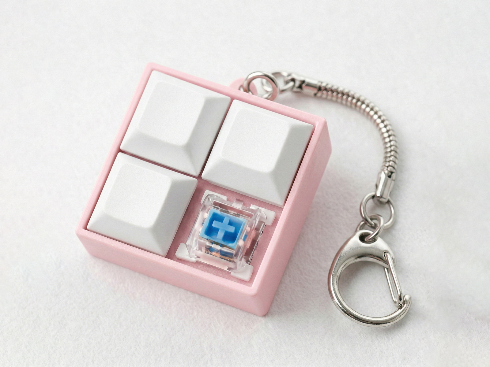 클라이언트 자체 프로젝트 | 실제 키보드에 끼워 사용할 수 있는 미니 키캡 키링입니다. 청축 특유의 경쾌한 클릭감을 그대로 담아 누를 때마다 소소한 즐거움을 선사하며, 가방이나 파우치 어디에든 가볍게 달아 일상 속에서 브랜드를 자연스럽게 표현할 수 있습니다.