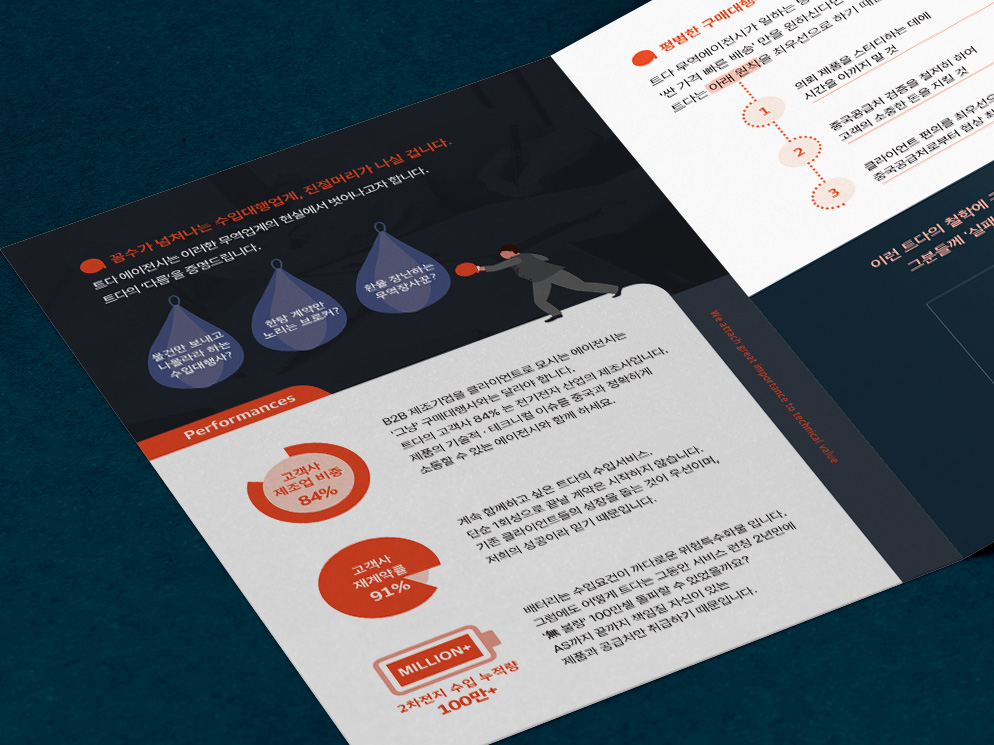 클라이언트 트다무역 디자인품목 3단 리플렛 제작연도 2023 | 무역 컨설팅 전문기업 트다무역 소개 및 홍보 리플렛입니다. 로고 컬러와 형태의 구도를 조정해 배경으로 활용했으며, 수출입 비지니스와 발전 단계를 나타낼 수 있는 여러 일러스트를 조합해 효과적으로 정보를 전달할 수 있게 구성했습니다. ![]() ![]() ![]() ![]() |