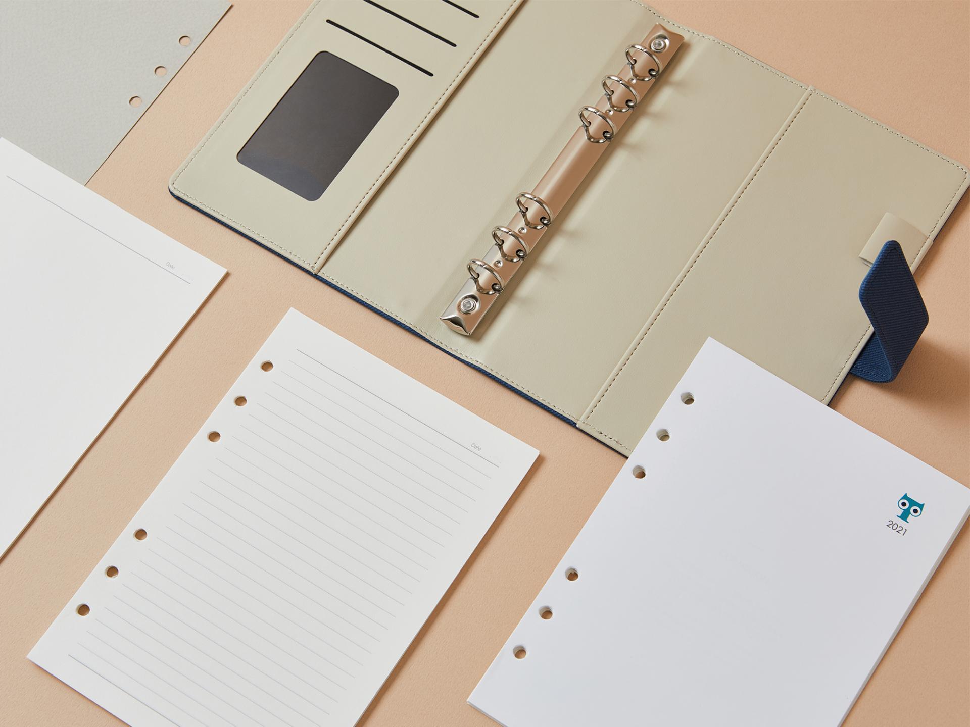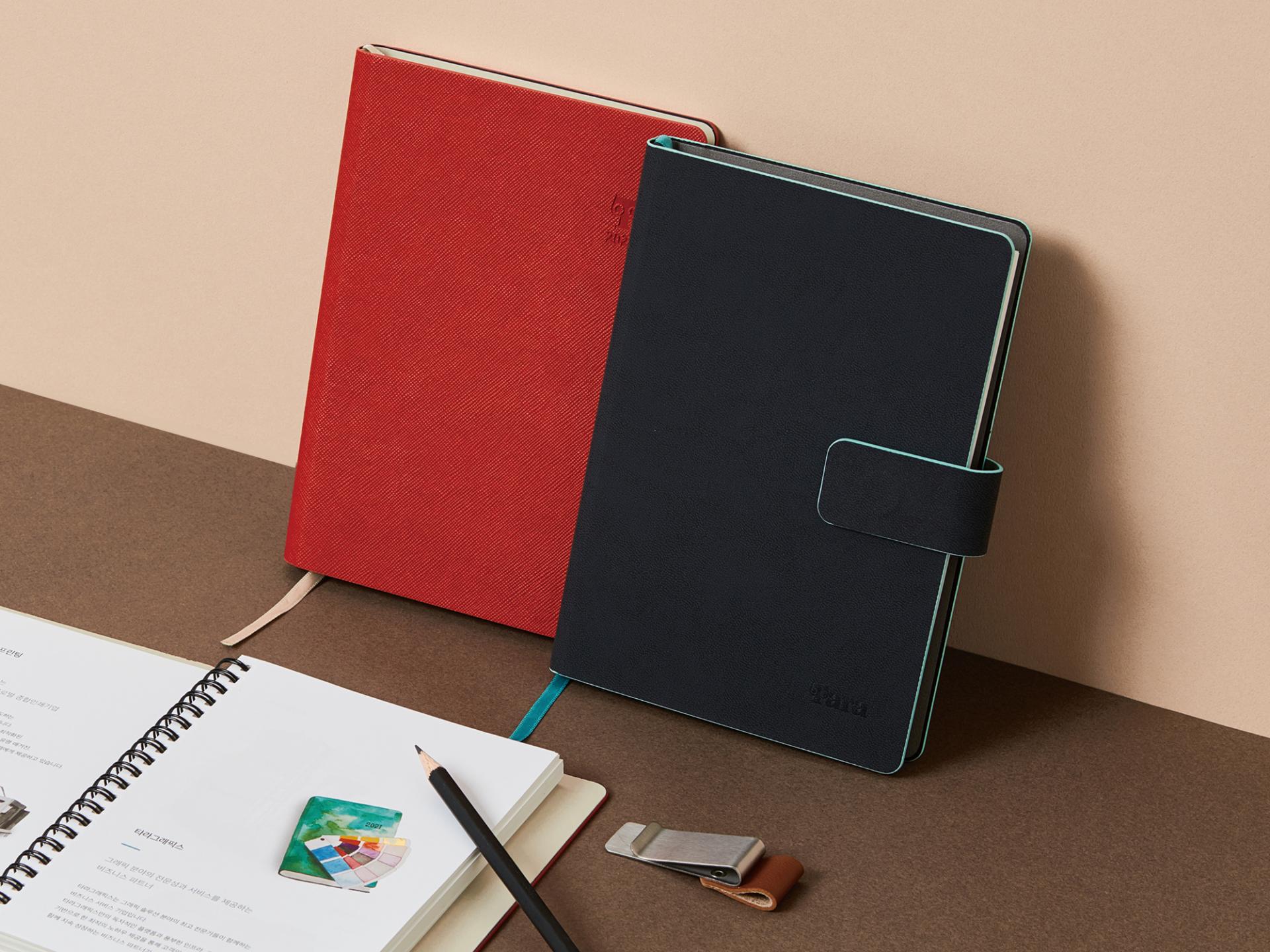 기본 요소로 깔끔하게 디자인한 실속형 미니멈 형태와 수납 기능을 확장한 양장 다이어리부터 필요와 기호에 따라 내지를 교체할 수 있는 시스템 다이어리, 사용성을 고려한 스프링 다이어리까지 다양한 형태, 재질, 제본 방식으로 기획한 시즌 다이어리입니다. 회사 소개 화보, 먼슬리, 위클리, 노트 등 다양한 내지 디자인을 조합하여 커스텀 다이어리로 만들 수 있습니다.