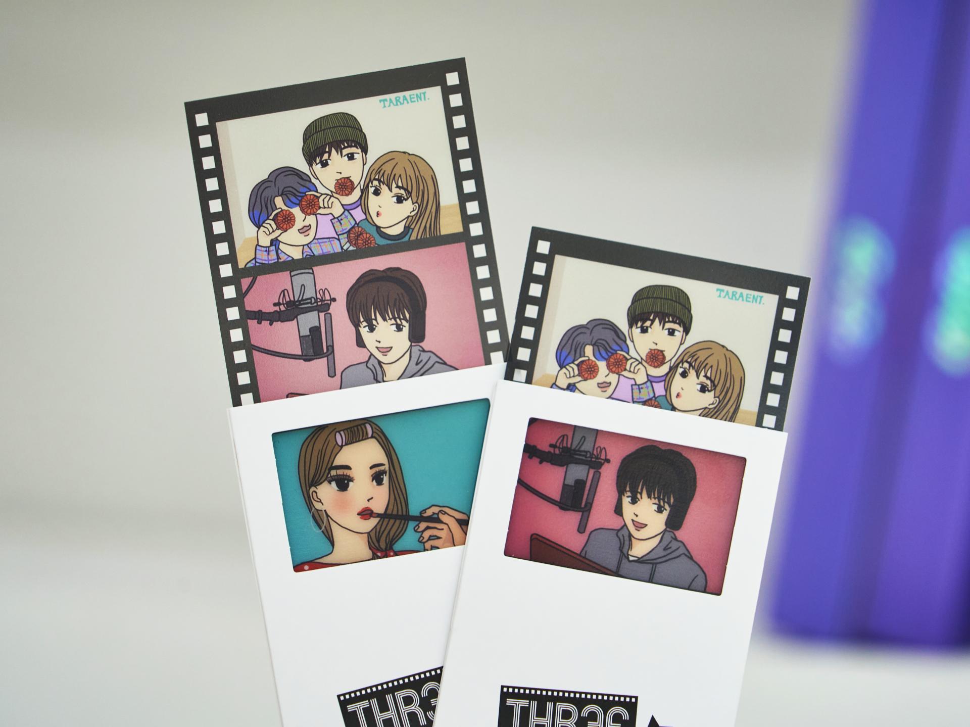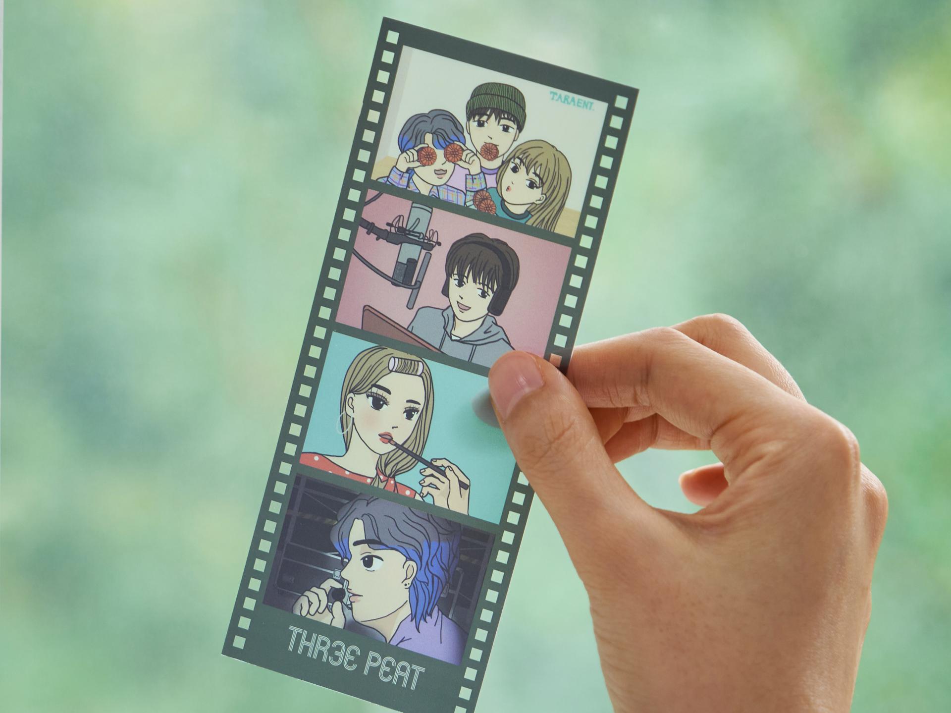 좋아하는 연예인의 설레는 순간을 오래 기억하기 위한 굿즈 세트입니다. 가장 기본적인 굿즈인 아크릴 키링과 포토카드, 리무버블 스티커 외에도 4컷 포토부스 느낌의 반투명 필름마크와 아크릴 스탠드, 그 배경으로 활용할 수 있는 무대 슬라이드 박스가 특별함을 더해줍니다. 애니메이션, 영화, OTT, 음악 등 다양한 비지니스에 응용할 수 있습니다.