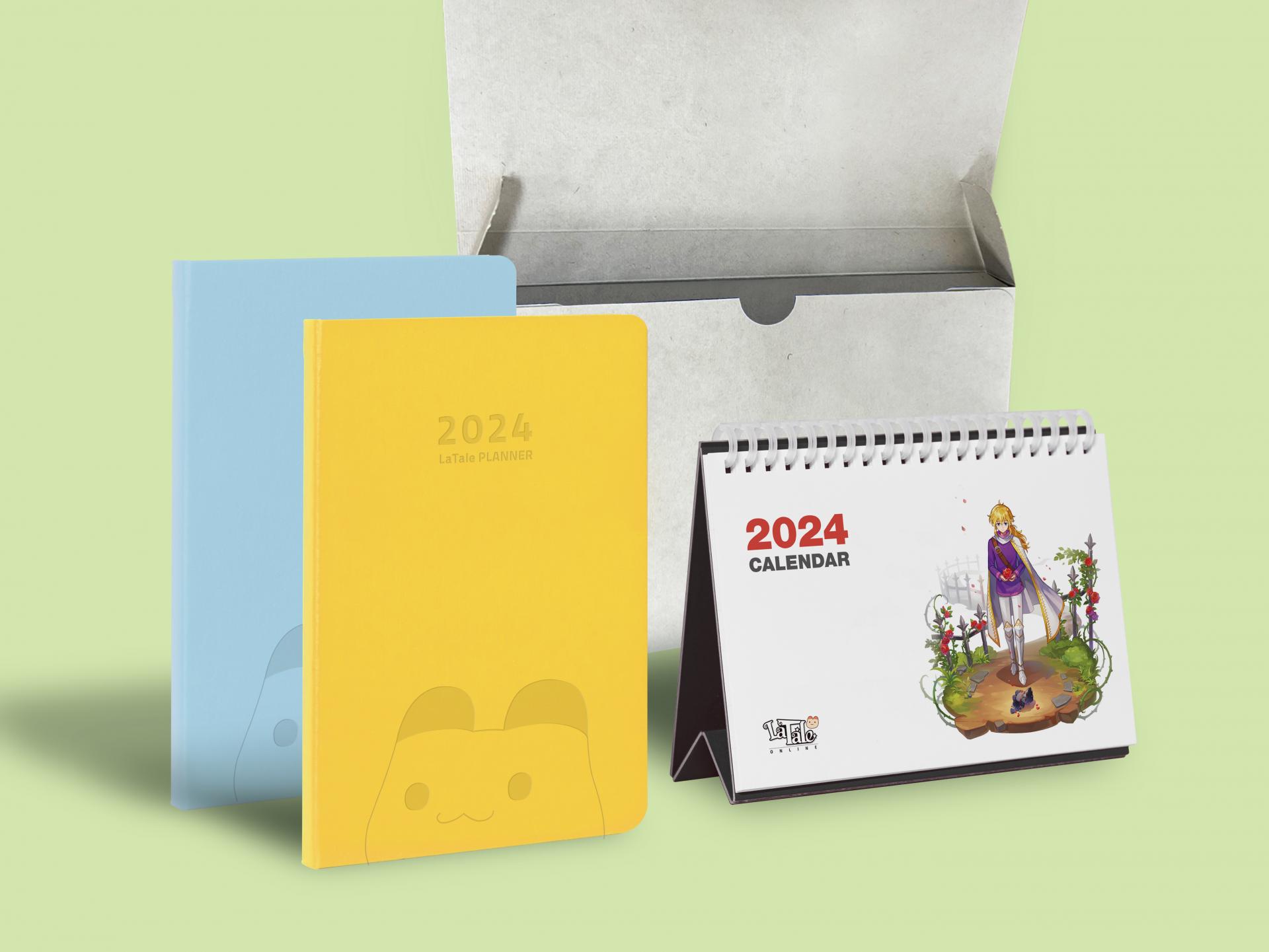 각 월마다 색을 달리한 원색 월판과 라테일 게임 일러스트가 잘 조화된 에코링 후가공의 컬러풀한 탁상 캘린더와 하단에 캐릭터 불박 가공으로 포근하고 귀여운 느낌을 더한 파스텔 컬러 다이어리로 구성된 시즌물입니다. 유저들을 고려한 톤앤매너와 친환경 요소를 모두 만족하는 핸디한 사이즈의 굿즈입니다.