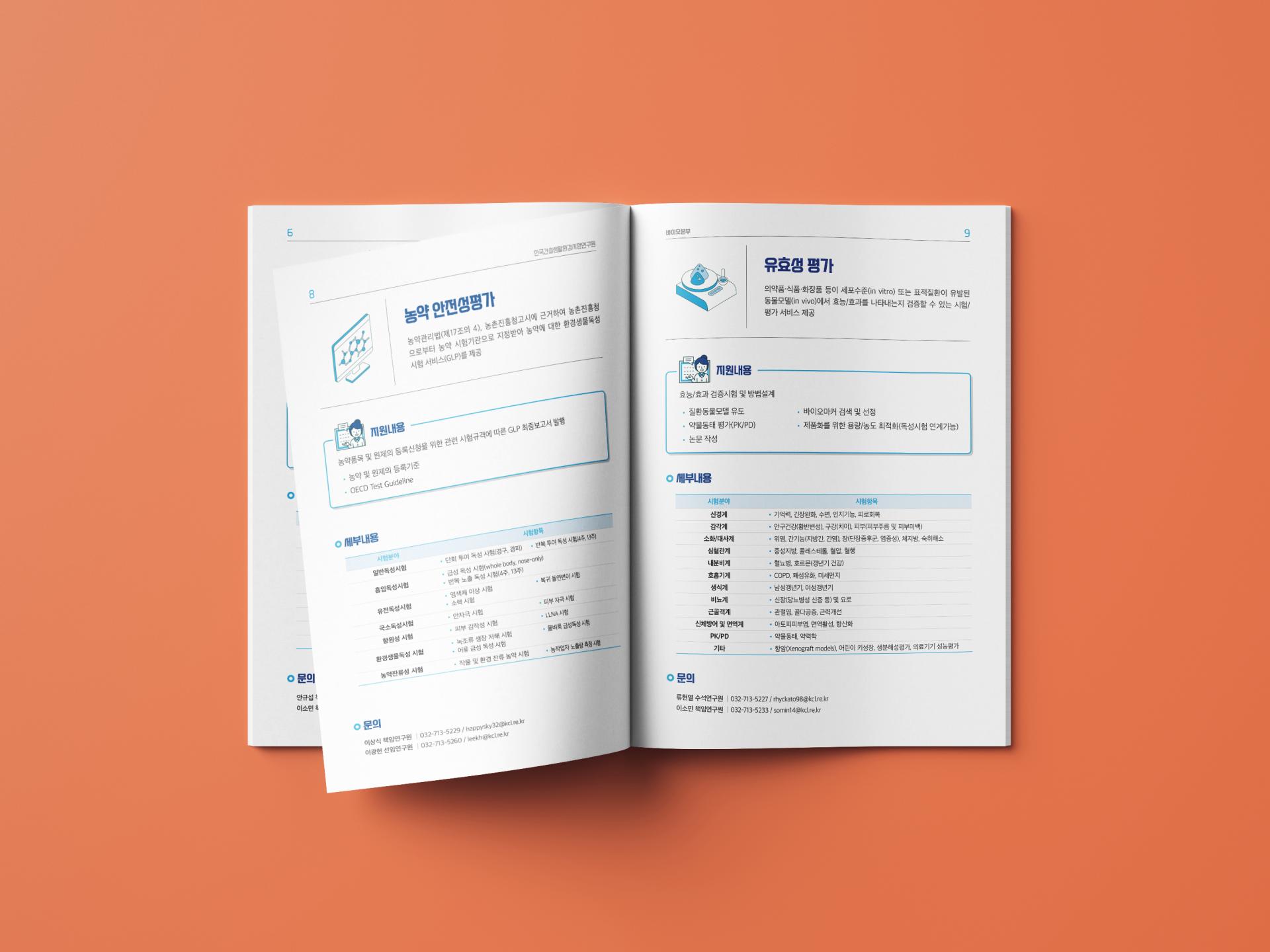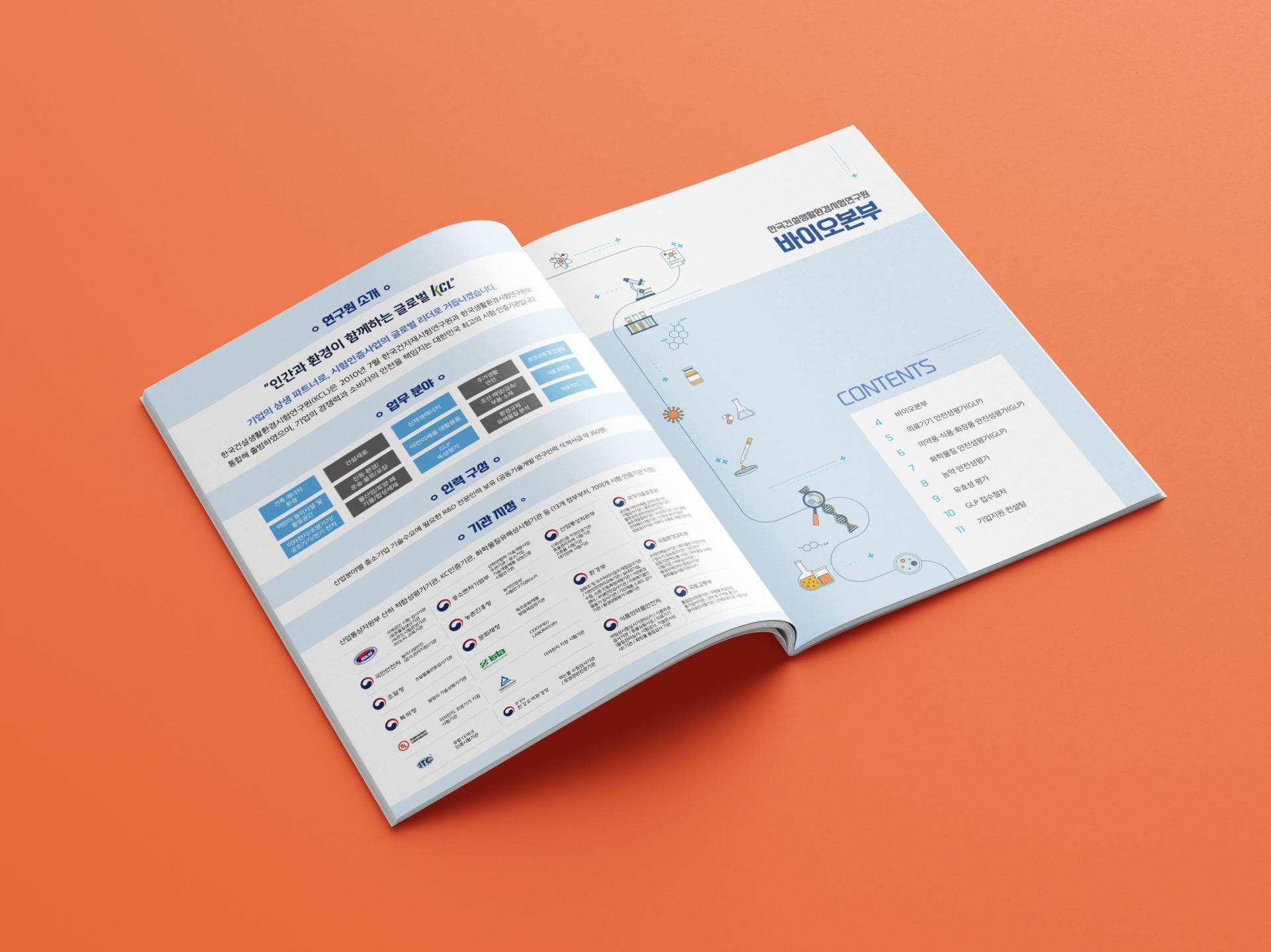 클라이언트 한국건설생활환경시험연구원 | 아이콘 일러스트 + 옅은 블루톤 조합으로 생명공학의 진지하고 무거운 느낌 대신 가볍고 경쾌한 분위기를 담은 바이오센터 소개 브로셔입니다. 내지의 통일된 레이아웃은 컨텐츠 가독성을 더욱 높여 줍니다. ![]() ![]() ![]() ![]() |