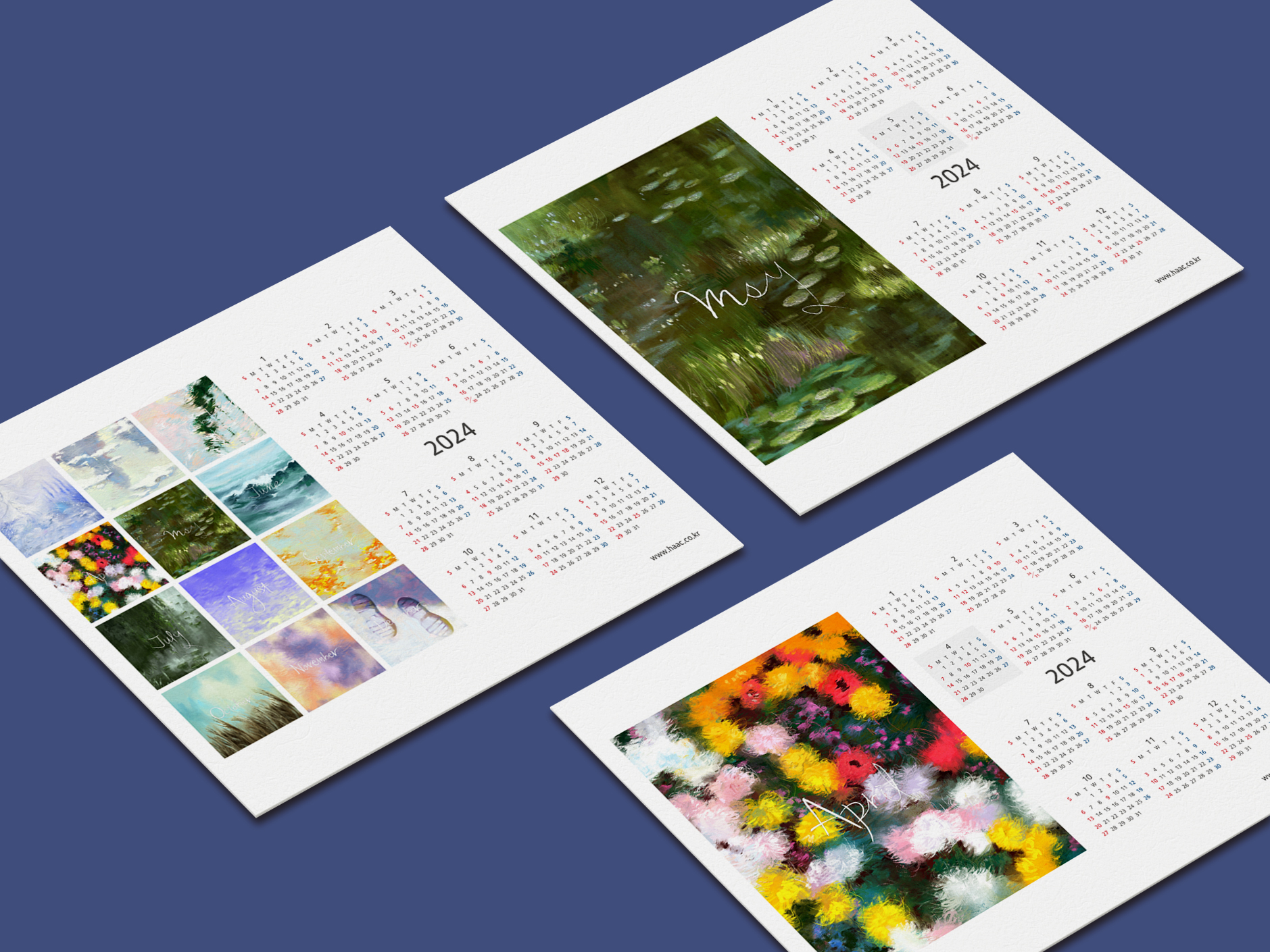 위클리, 먼슬리 등 스케줄 관리에 용이한 여러 레이아웃으로 제작되어 사용 장소와 메모 패턴, 용도에 따라 선택해 사용할 수 있습니다. 탁상탈력은 계절감이 느껴지는 큼직한 붓터치의 유화와 작은 전체 월판이 균형을 이루는 디자인으로, 사이즈에 따라 레이아웃을 달리해 모든 내용이 안정적으로 잘 보일 수 있게 조정했습니다.