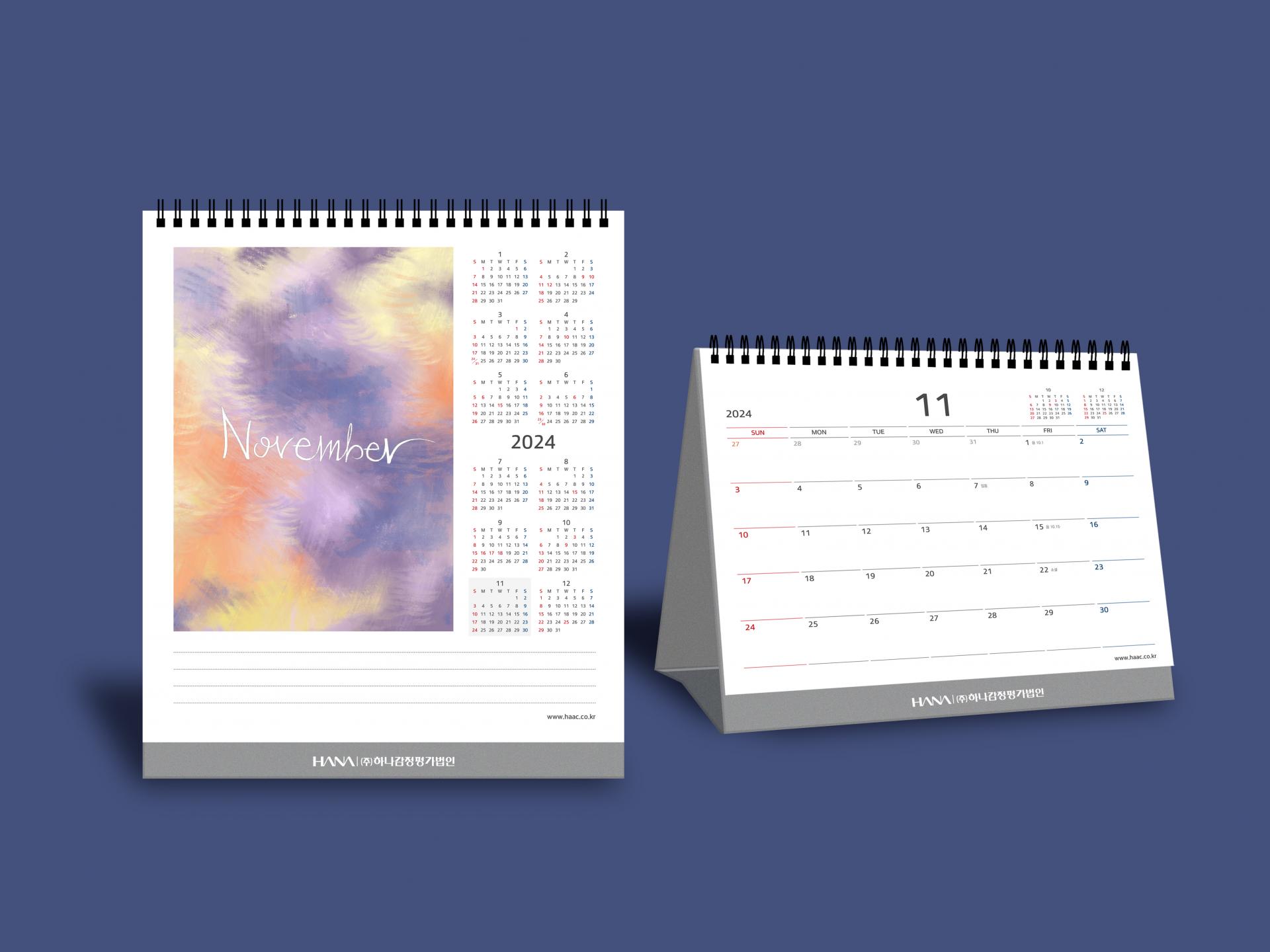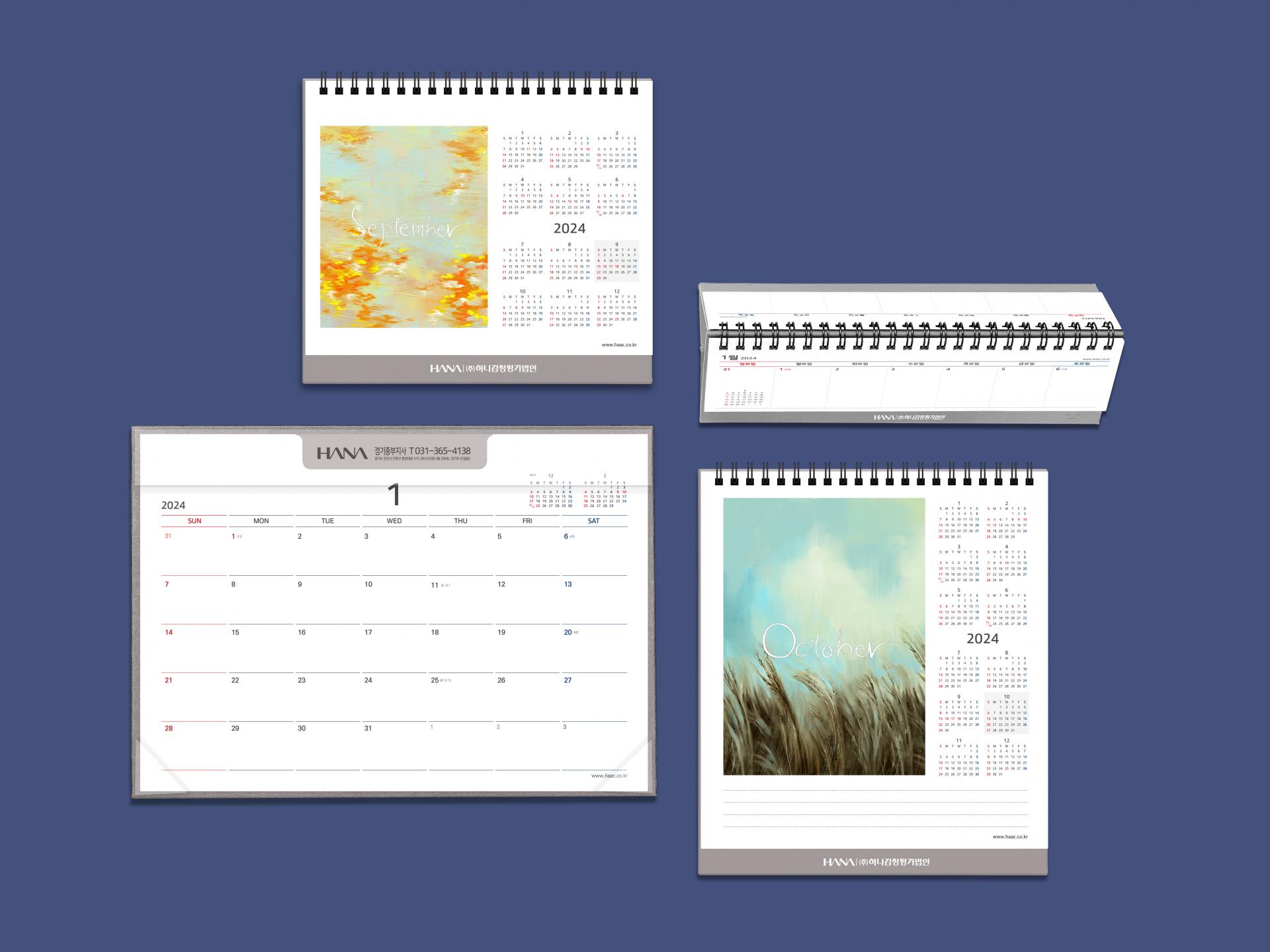 클라이언트 하나감정평가법인 디자인품목 탁상캘린더, 스케줄러 제작연도 2023 | 위클리, 먼슬리 등 스케줄 관리에 용이한 여러 레이아웃으로 제작되어 사용 장소와 메모 패턴, 용도에 따라 선택해 사용할 수 있습니다. 탁상탈력은 계절감이 느껴지는 큼직한 붓터치의 유화와 작은 전체 월판이 균형을 이루는 디자인으로, 사이즈에 따라 레이아웃을 달리해 모든 내용이 안정적으로 잘 보일 수 있게 조정했습니다.