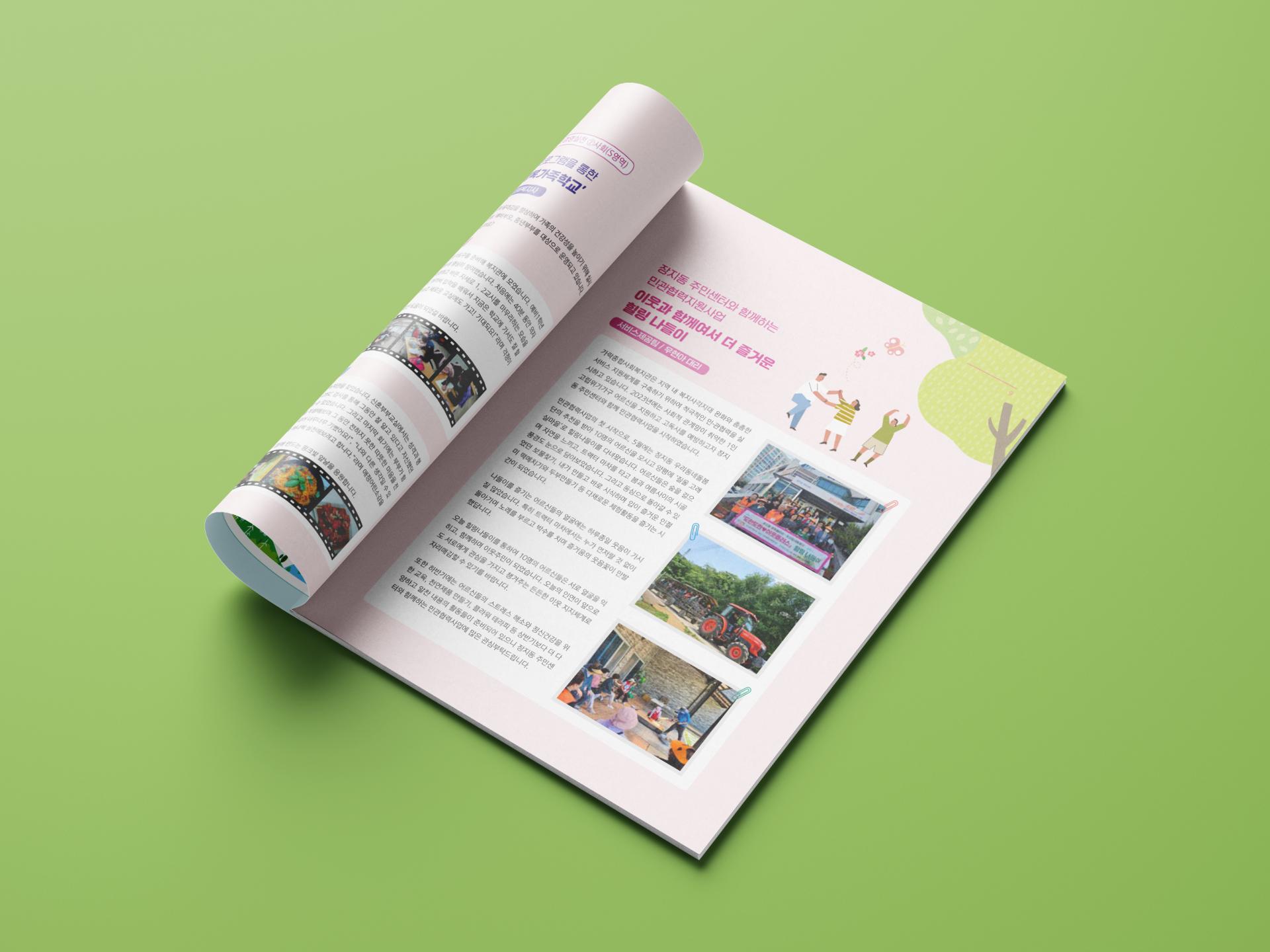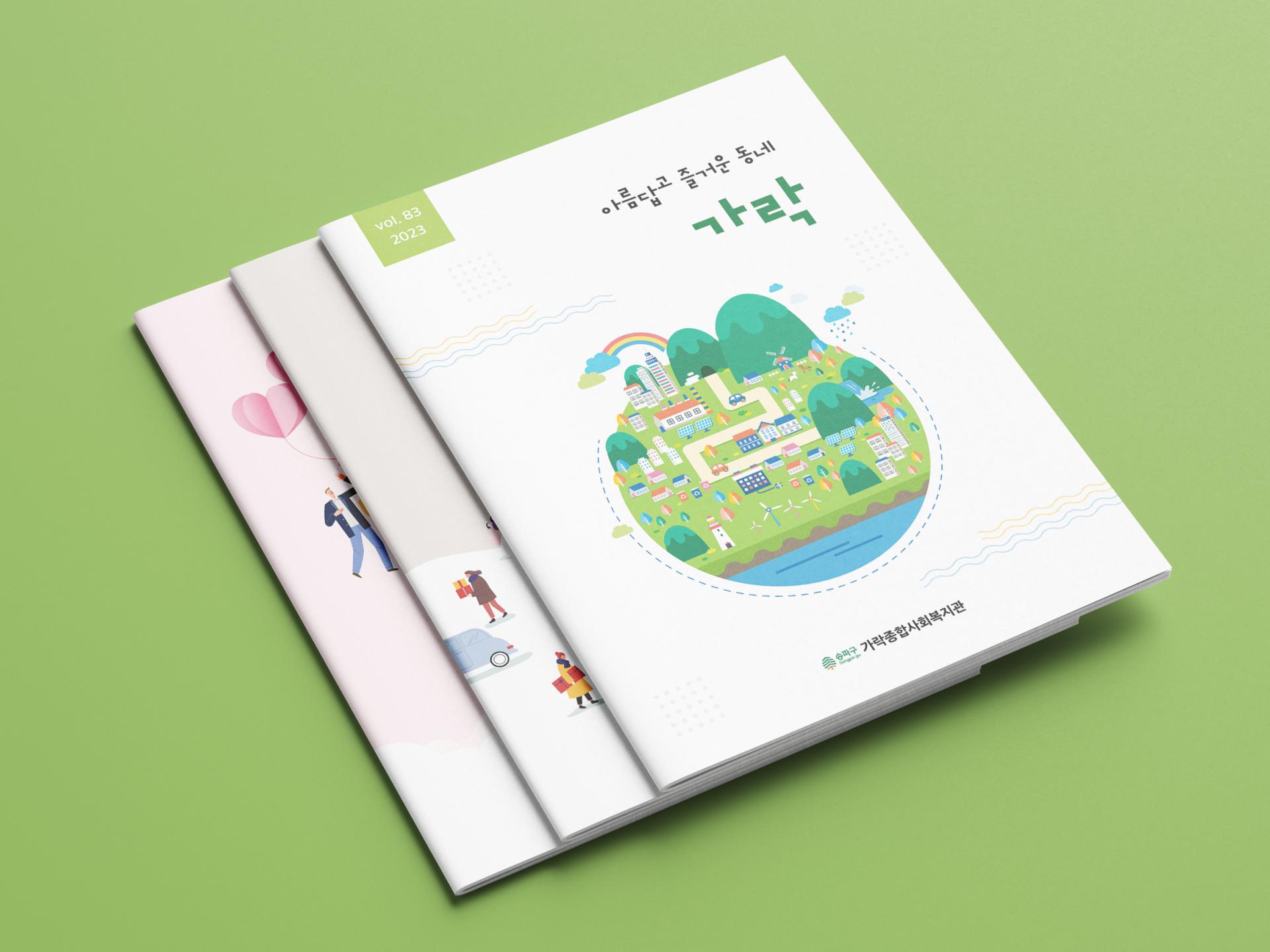 가락종합사회복지관의 새로운 소식을 게재하는 분기별 뉴스레터로 사회복지라는 단어에서 느껴지는 안락함, 따뜻함을 파스텔톤 컬러와 아기자기한 일러스트로 표현했습니다. 또한 텍스트가 많은 컨텐츠를 가독성 있게 전달하기 위해 다양한 레이아웃과 배치를 적용했습니다.