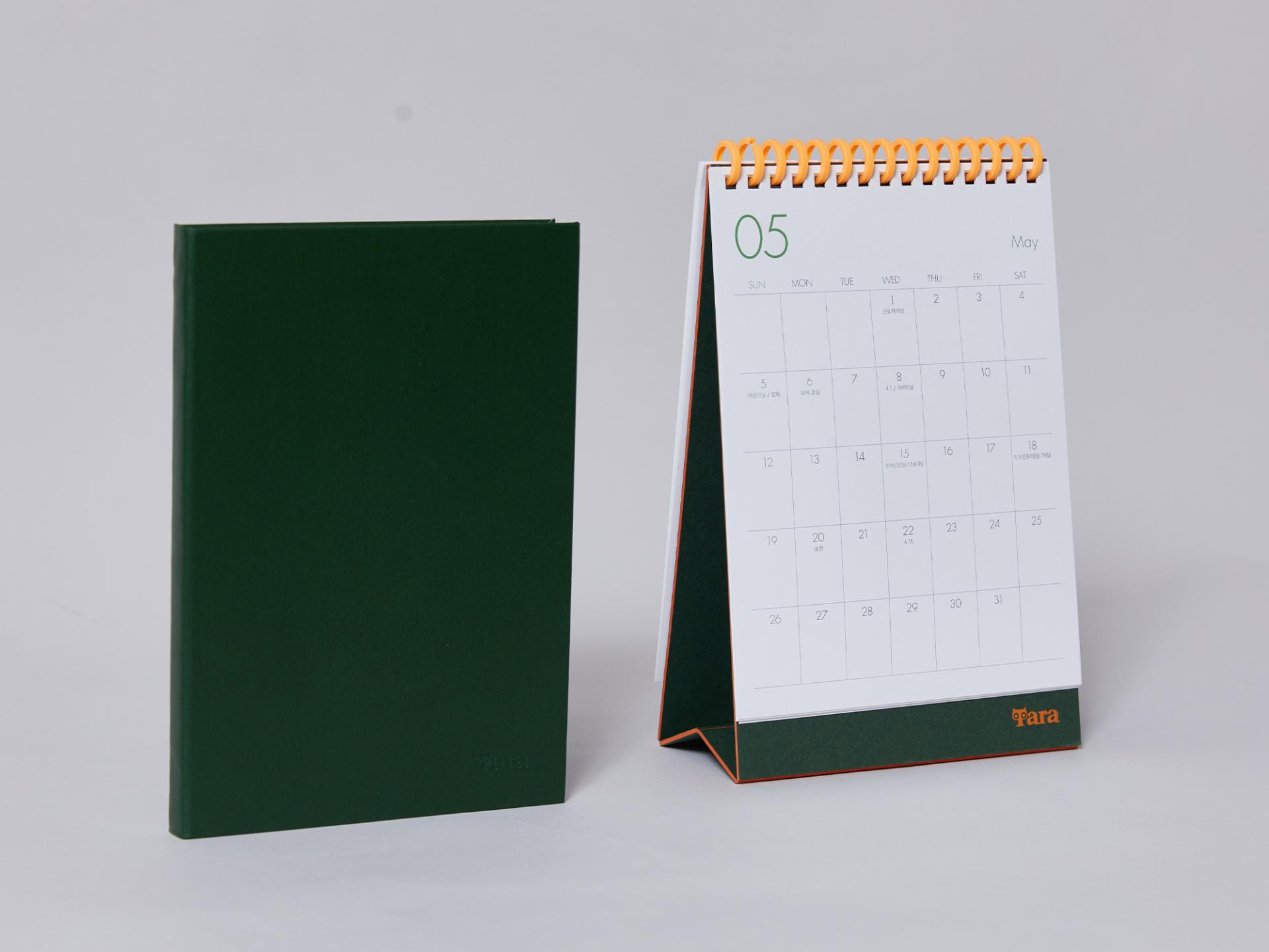 클라이언트 자체 프로젝트 디자인품목 다이어리, 탁상캘린더 제작연도 2023 | 2024년 시즌물 세트는 원료의 결이 그대로 살아있는 Forest Stewardship Council® (FSC®, 국제산림관리협회)의 인증 용지로 제작한 패키지, 친환경 한지 PU, 후가공까지 넓은 범위의 머터리얼로 구성되었습니다. 만년 다이어리 형태를 다수 채택해 해가 지나도 오랜 사용이 가능하며, 사이즈와 스케줄러 레이아웃, 컬러를 다양하게 적용해 실용성, 디자인 측면의 장점을 부각시켰습니다.