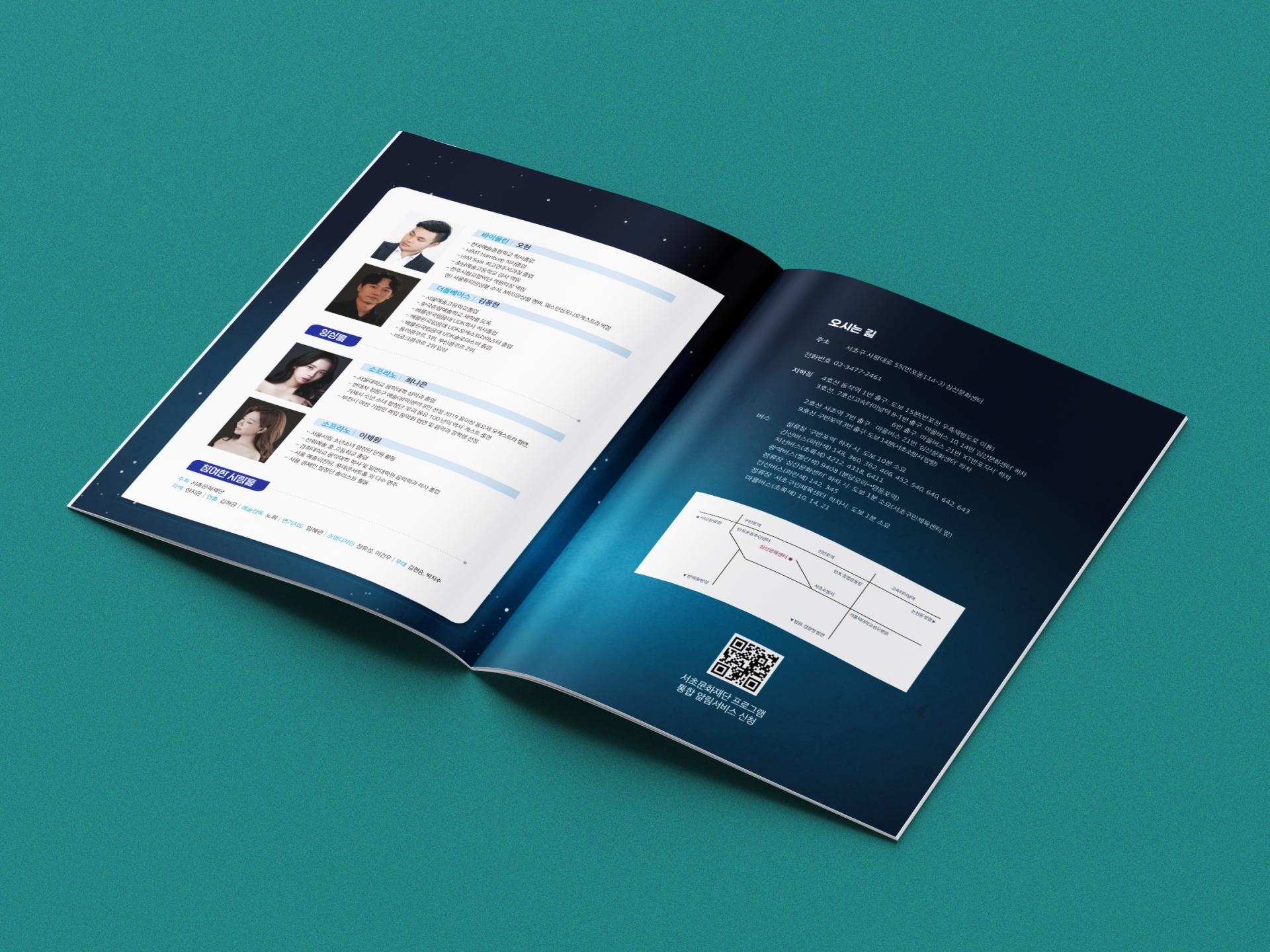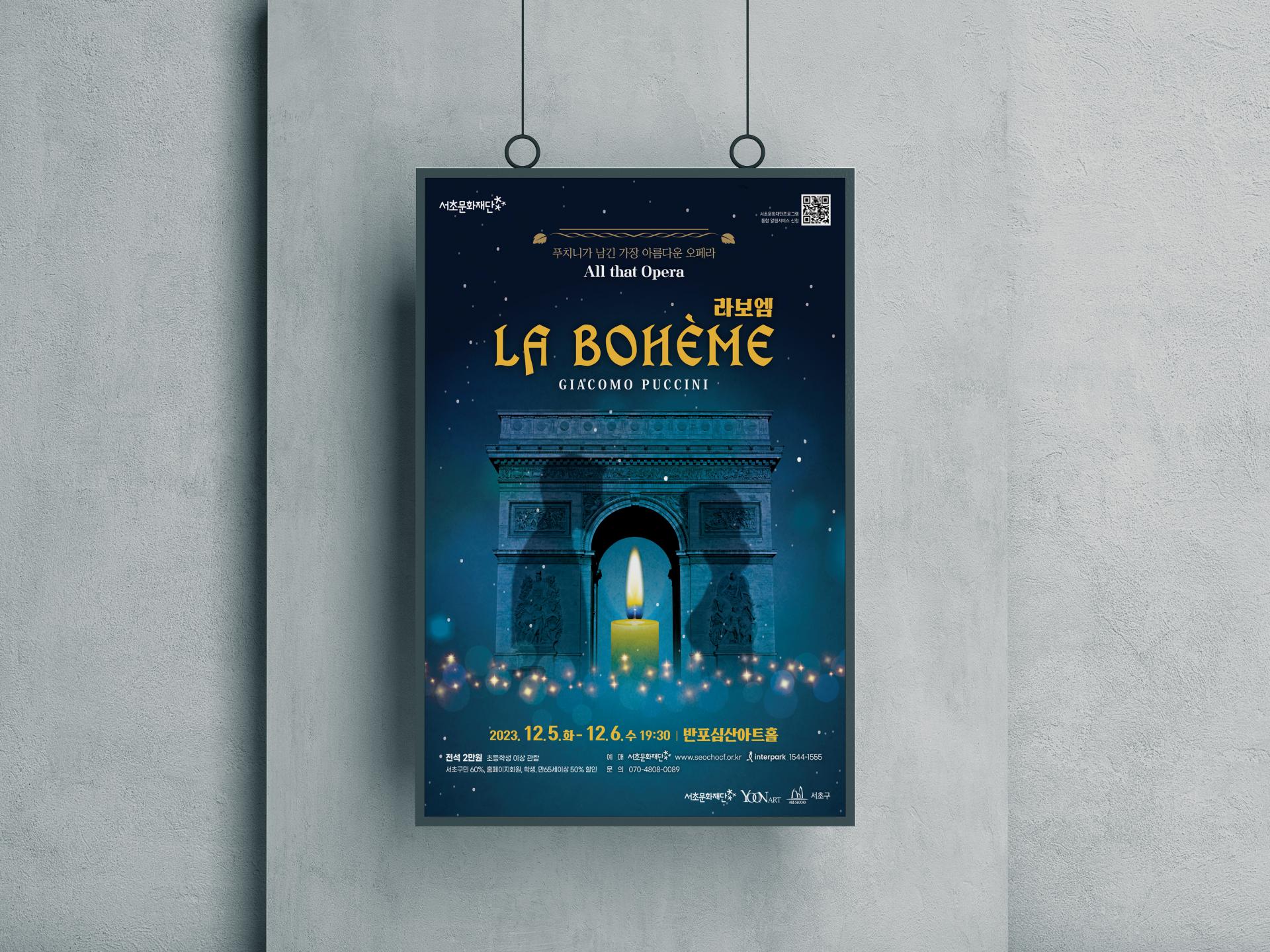 클라이언트 서초문화재단 디자인품목 포스터, 리플렛, 키오스크, 웹배너, 카드뉴스, 현수막 제작연도 2023 | 밤의 개선문과 주인공들의 실루엣, 1막 아리아의 주제인 촛불을 매치해 배경인 파리의 낭만적인 분위기를 잘 그려낸 디자인입니다. 독특한 서체의 제목 타이포는 배경과 대비를 이루며 따뜻하면서도 이국적인 느낌을 더합니다. 공연 전 웹용 SNS, 당일 공연장 실사, 배포 인쇄물까지 공연 기간 내내 모든 제작물에 활용되었습니다. ![]() ![]() ![]() ![]() ![]() |