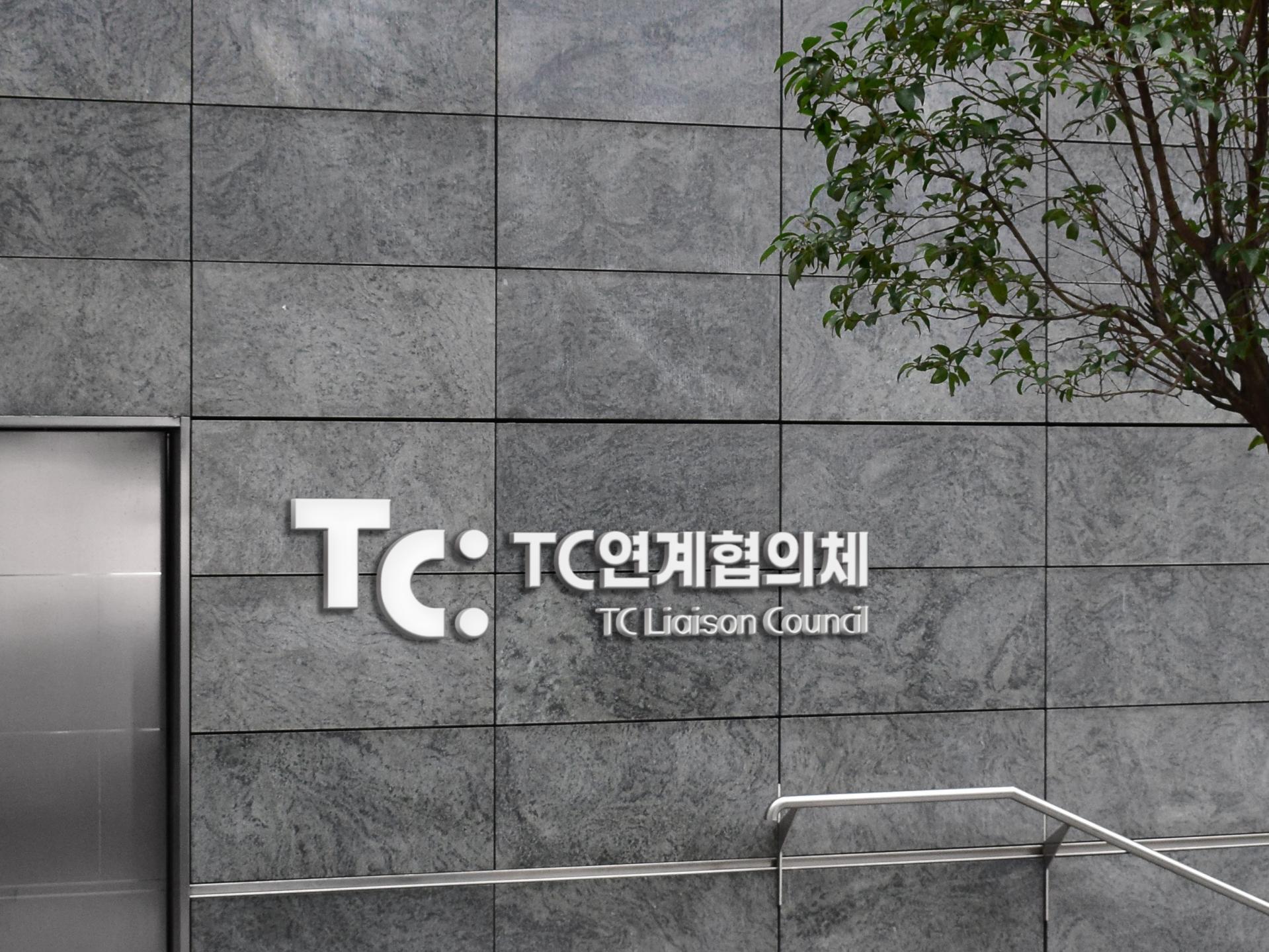 영문 키워드 TC를 심볼화한 심플한 CI 디자인입니다. TC우측에 두개의 원을 삽입하여 손을 맞잡은 사람을 표현함으로써 연계협력 기반 협의체의 특징을 강조했습니다. 국문 타입은 도형으로 표현된 심볼의 영문과 어울리도록 고딕계열의 서체를 변형하여 심볼과 조화로운 형태가 되도록 조정했습니다.