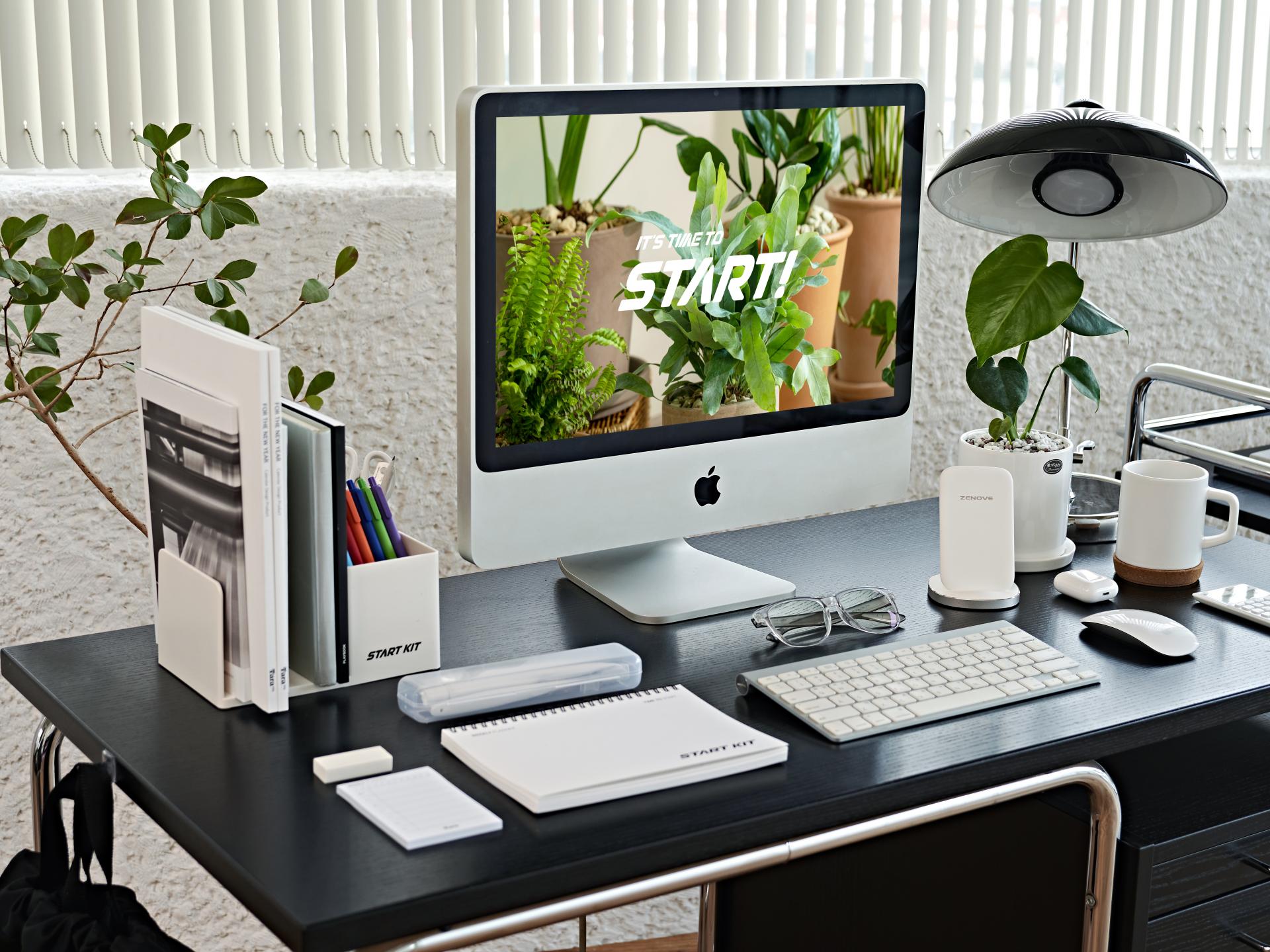 꼭 필요하면서도 버리지 않고 오래 쓸 아이템과 아웃 패키지로 셀렉한, 신입사원의 새로운 시작을 도와 줄 베이직 웰컴키트입니다. 무난한 블랙&화이트톤에 뉴비의 역동적인 느낌을 담은 사선 로고타입을 제작해 구성품에 응용했습니다. 전체적으로 캐주얼한 무드로 스타트업 기업의 웰컴키트로 추천하는 키트입니다.
