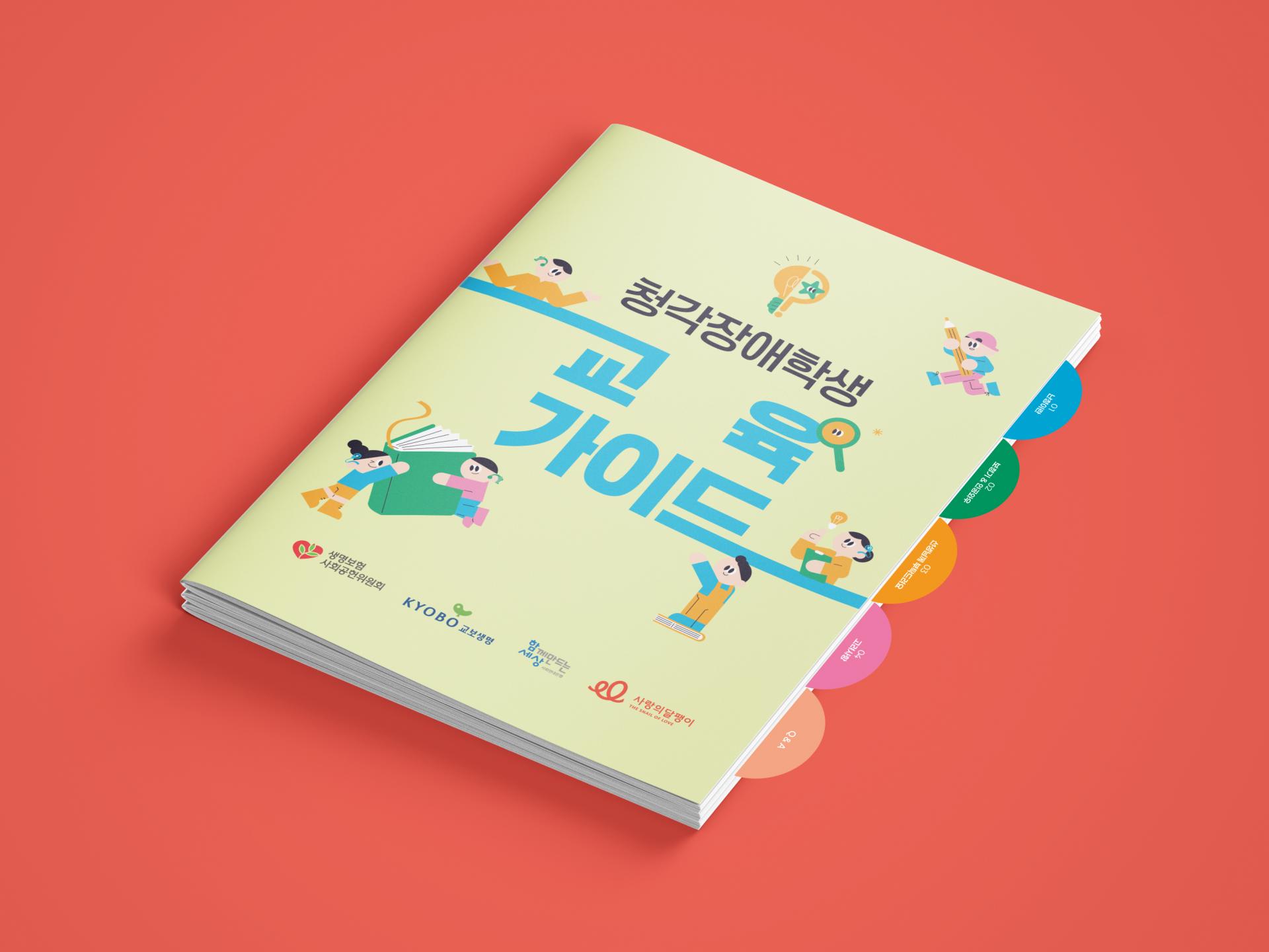 클라이언트 사랑의달팽이 | 청각장애학생 지도에 필요한 정보를 효율적으로 전달하기위해 섹션별 탭 구조로 체계화한 교육 가이드북입니다. 직관적인 아이콘과 일러스트 인포그래픽을 활용하여 바쁜 교육 환경에서도 빠르게 참고할 수 있도록 가독성과 실용성에 집중한 디자인입니다.
