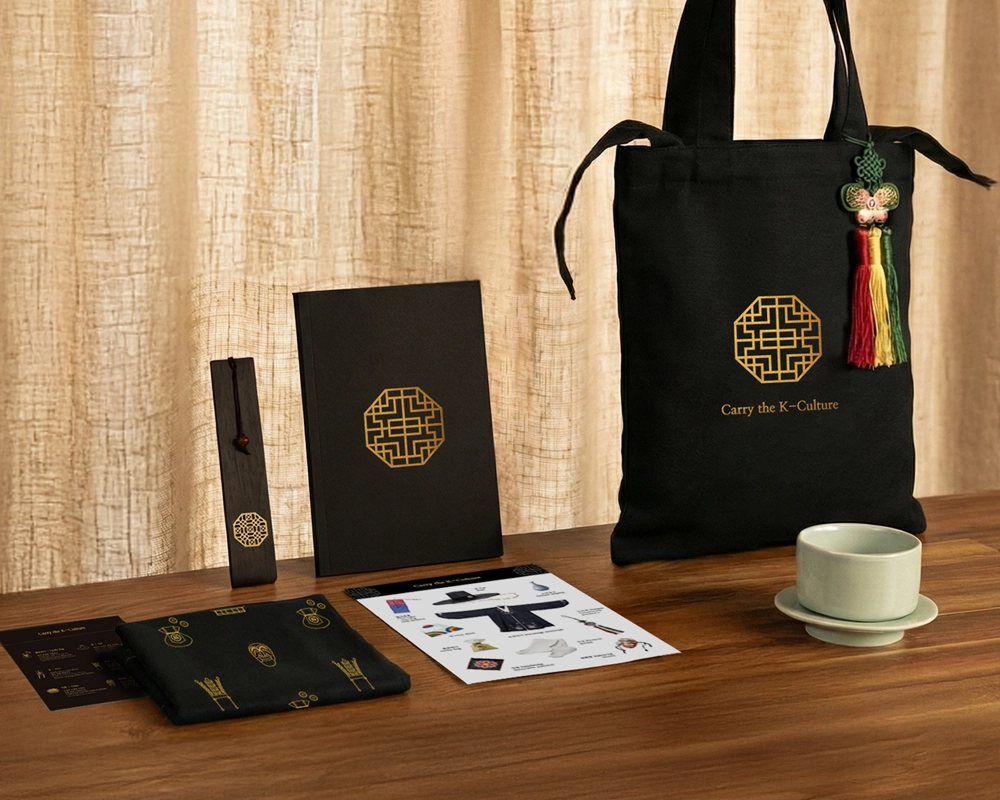 금박 에코백, 도자기 잔, 손수건, 책갈피, 오간자 파우치, 금박 노트, 스티커